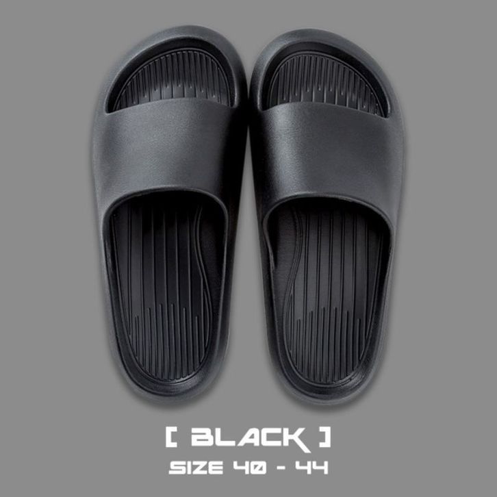 Sendal Selop Pria Wanita Dewasa Hitam Polos Sendal Slippers Slip On Slide Kasual Santai Ringan Anti Slip