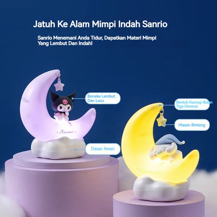 Kuromi Lampu Tidur Led Rechargeable 3 Tingkat Lampu Tidur Sanrio Lampu Malam Led Night Lampu Bulan Lampu Tidur