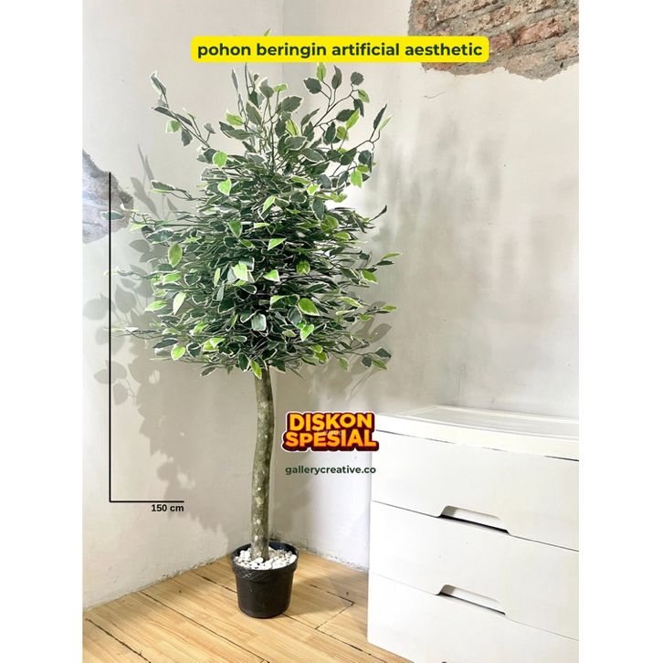 pohon artificial aesthetic - daun besar lebat -pohon artificial aesthetic beringin varigata hiasan rumah bunga hias