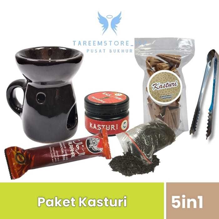 Paket Hemat 5in1 keramik +bukhur kasturi + kerucut isi 25 hm + areng 1 bungkus + capitan