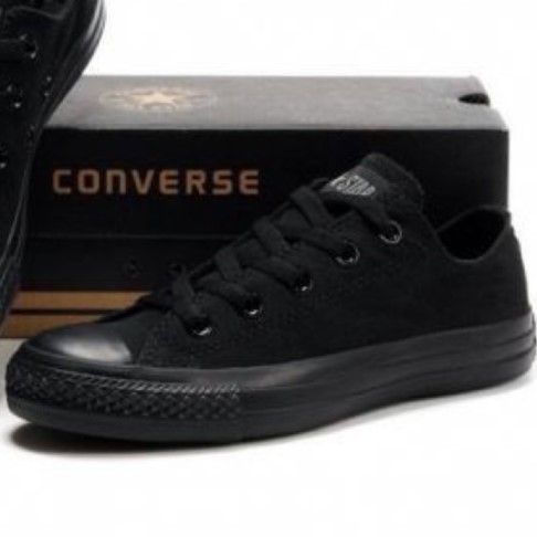 Sepatu Sneakers Hitam Polos All Star Low Full Black Sneakers Cowok Pria Formal Kasual Sekolah Kerja Trendy Kekinian
