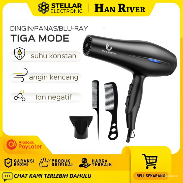 Hair Dryer Rambut Han River Hrhd01bk 800w Low Watt Pengering Rambut Murah Berkualitas