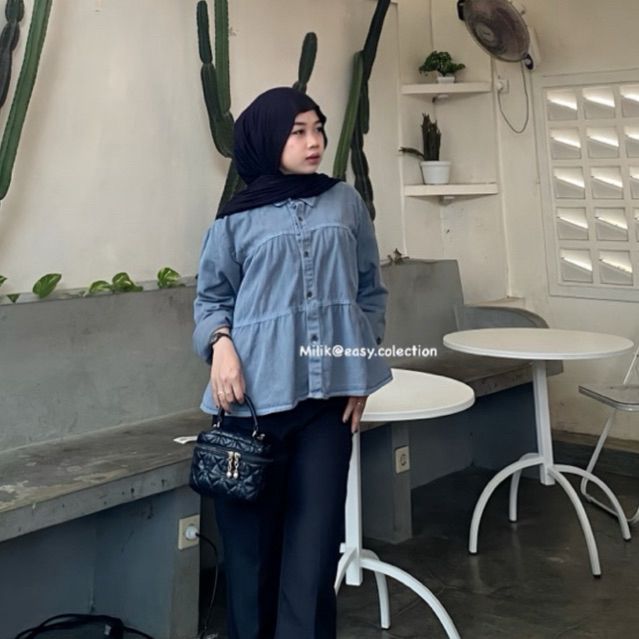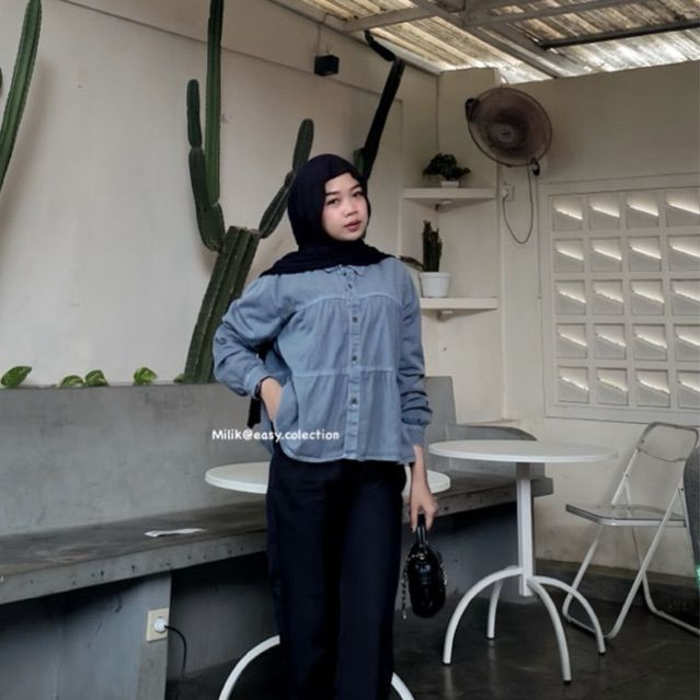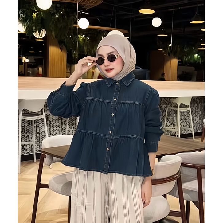 Atasan Wanita Kekinian - Lengan Panjang Kemeja Jeans Crop Top dengan Desain Stylish dan Nyaman untuk Tampil Harian