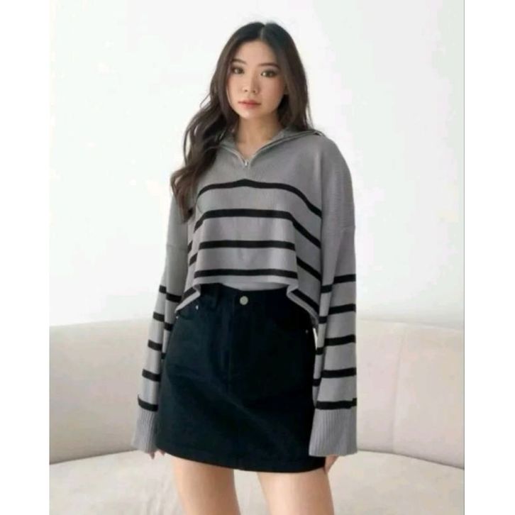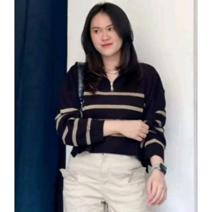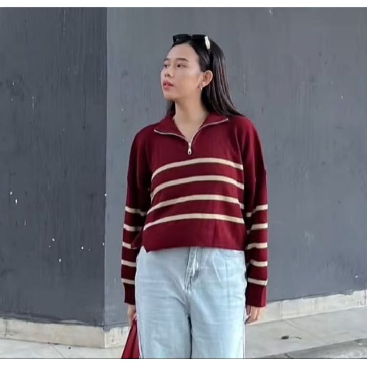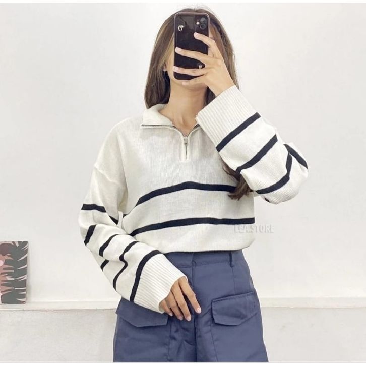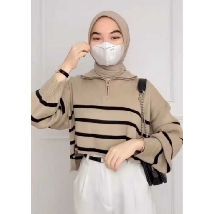 Sweater Distro Sweater Polos Knit Tops Atasan Rajut Katun Wanita Tangan Panjang Hijab Friendly Sweater Cewe