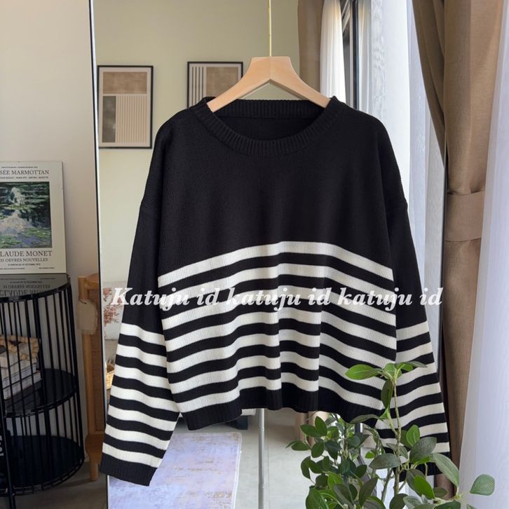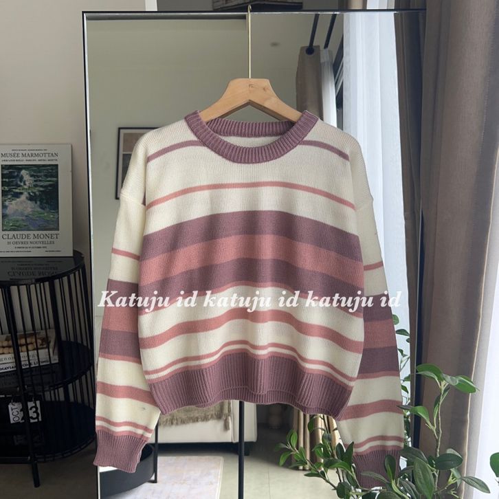 Sweater Distro Sweater Polos Sweater Rajut Crop Zemma Motif Garis Knitt Premium Sweater Distro Sweater Polos