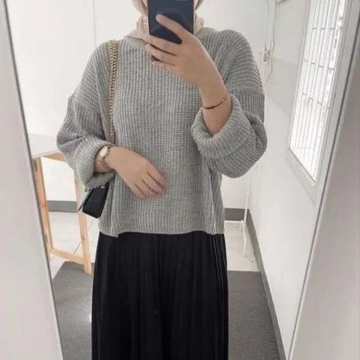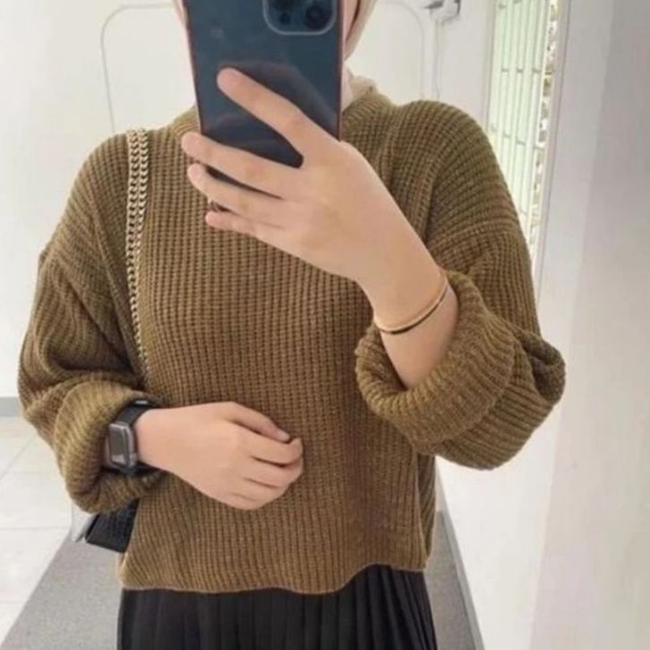 Sweater Cewek Oversize Sweater Polos Blouse Knitear Crewneck Wanita Atasan Korea Hoodie Distro