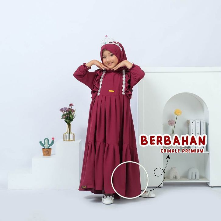 Baju Gamis Anak Cringkle Air Flow Umur 1 Sampai 9 Tahun Pakaian Outfit Ootd Lebaran Lengan Panjang Trendy Kekinian