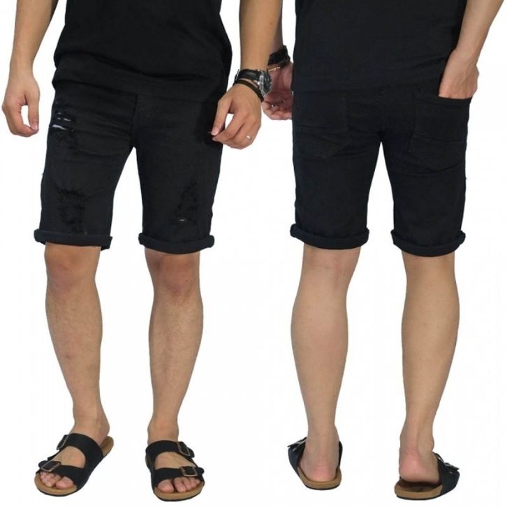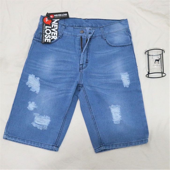 Celana pendek - jenas pendek - celana jenas pendek sobek - Wiske Jeans Pendek Ripped Robek Pria Premium Distro New
