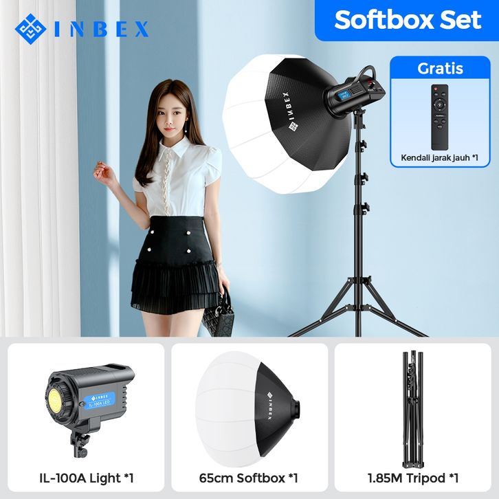 INBEX IL-100A Softbox Lighting Studio Lampu Live streaming 100W Foto Photography 3200K-5800K +2.8M Tripod