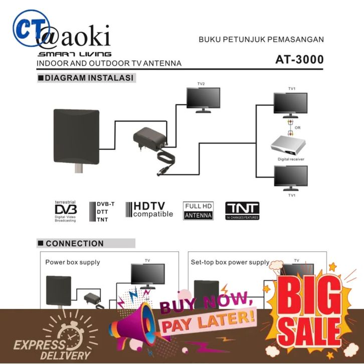 Antena Tv Digital AOKI AT3000 /Antena Indoor Outdoor