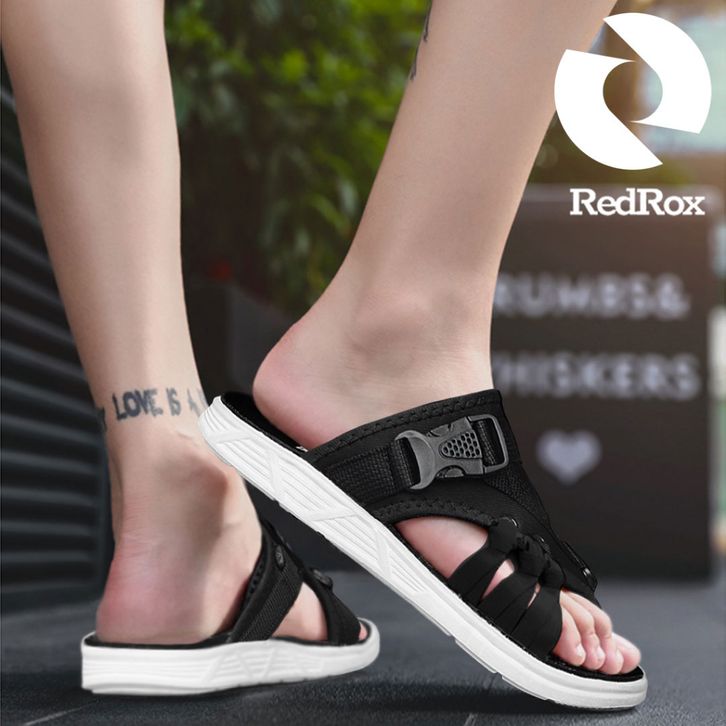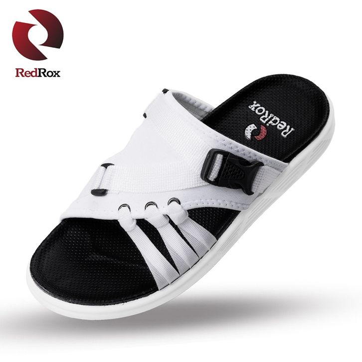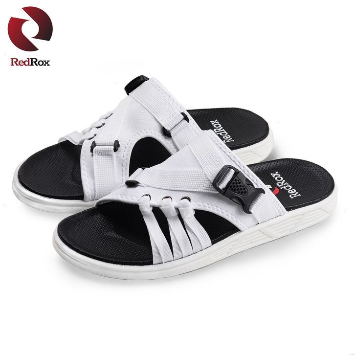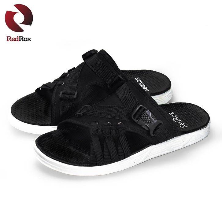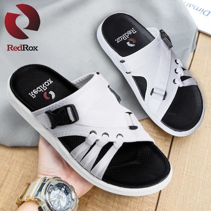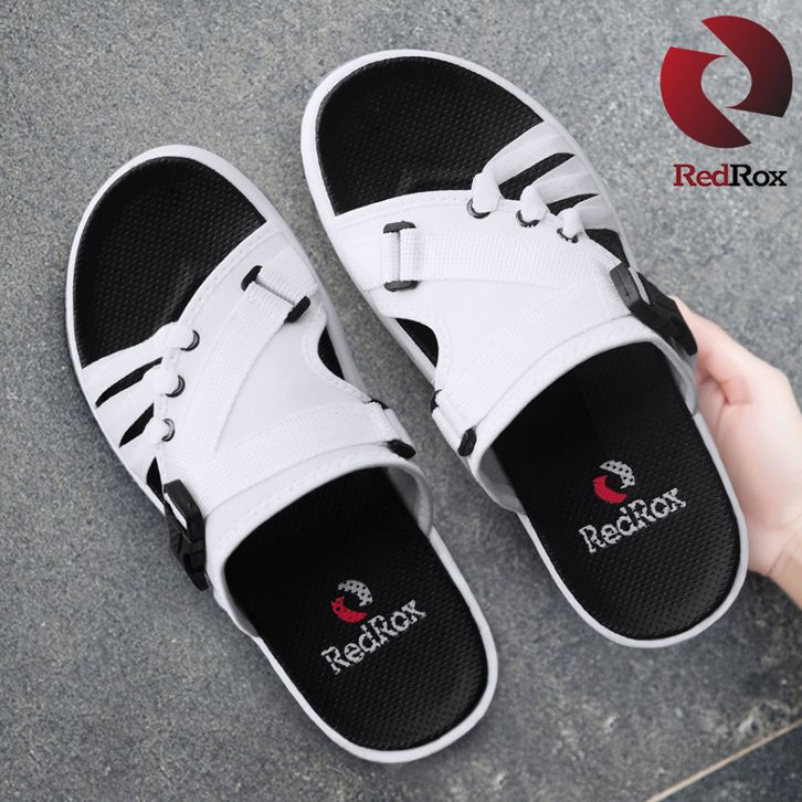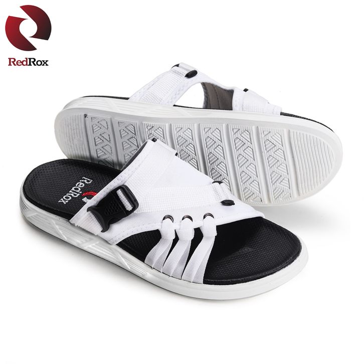 Sandal Pria Redrox Warna Putih Hitam Sendal Fashion Ootd Kasual Sandal Slip On Cowok Kekinian Anti Selip Kekinian