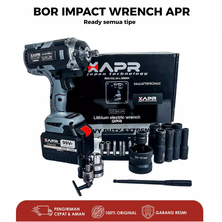 BOR IMPACT APR AP84 78 WRENCH TYPE 1850 NM PRO MAX MESIN PEMBUKA BAUT 1 2 INCH MOBIL MOTOR BATERAI IMPEK BATRE MODERN