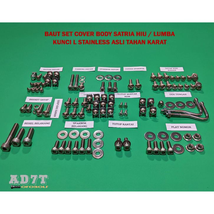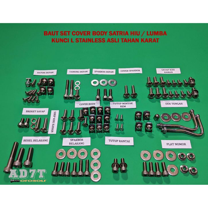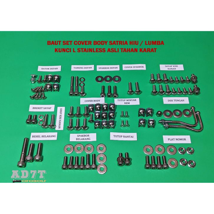 Baut Body Suzuki Satria RU 120/Hiu LSCM Kunci L Full Stainless Asli