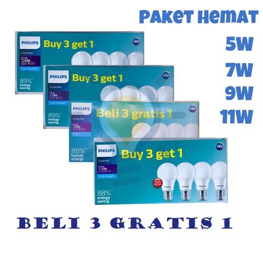 GRATIS ONGKIR Paket 3 Gratis 1 Lampu LED Bulb Philips Multipack MyCare 6-12 W