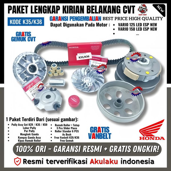 [Star] Paket CVT Pully Assy Set Kipas Rumah Roller Vanbelt Vario 125 150 Led Esp 2015 S/d 2024 K35 K36