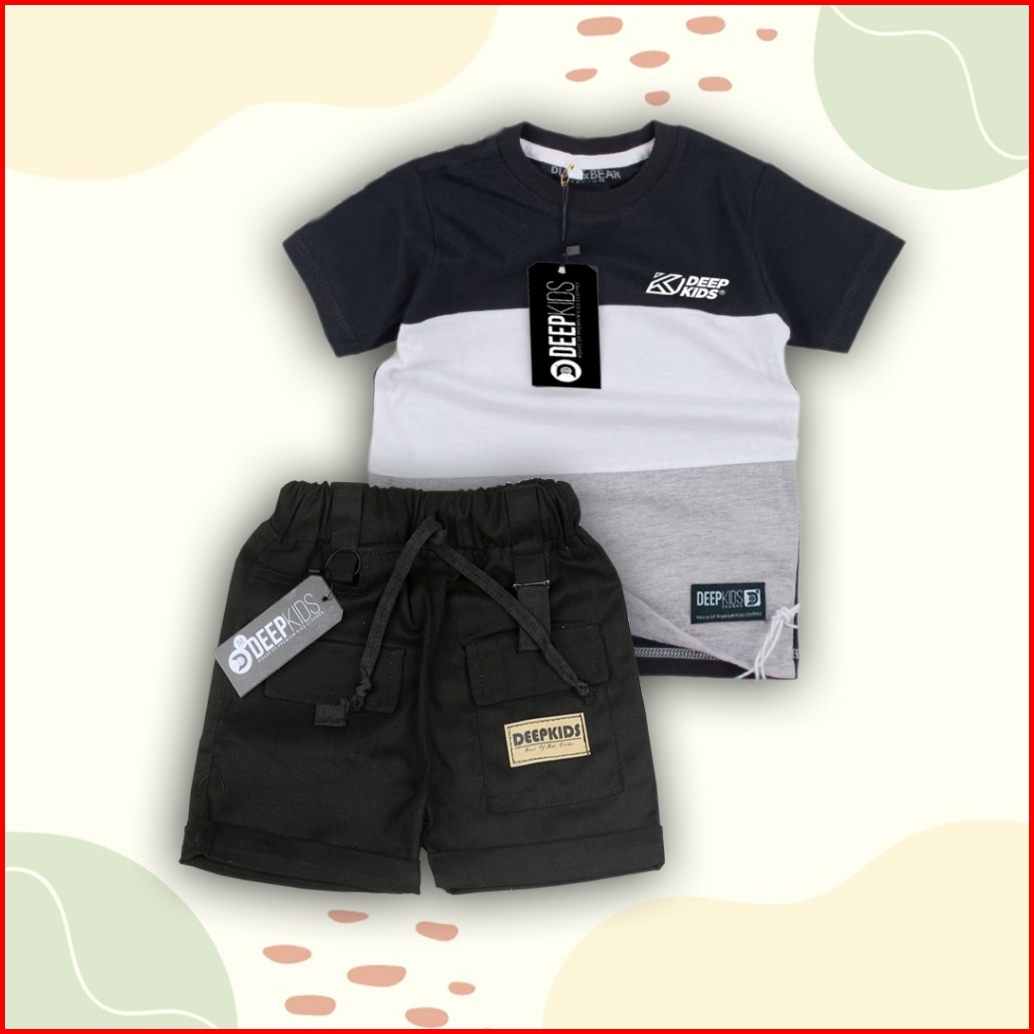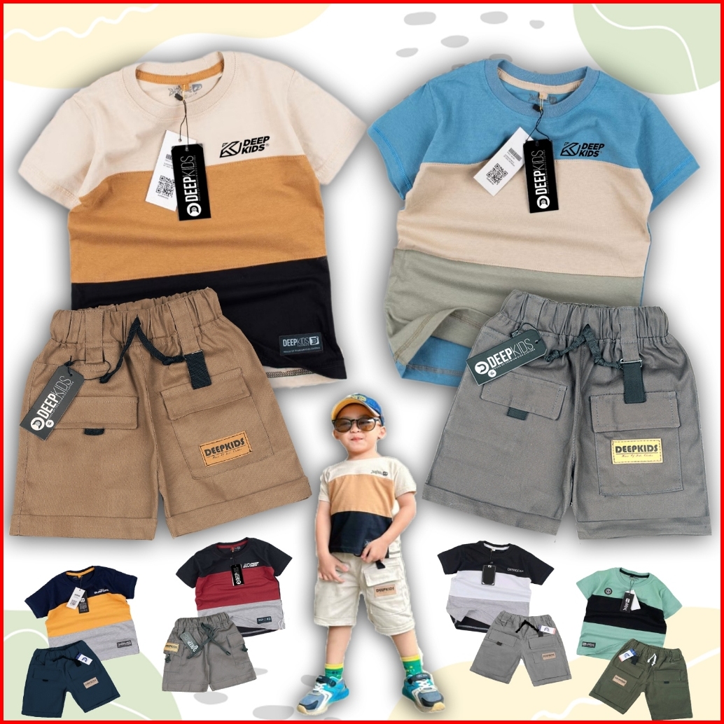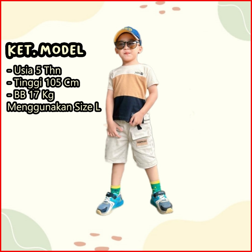 Setelan Anak Laki Laki Distro Kaos Dan Celana Pendek Cargo Usia 1-12 Tahun Set Combinasi Series