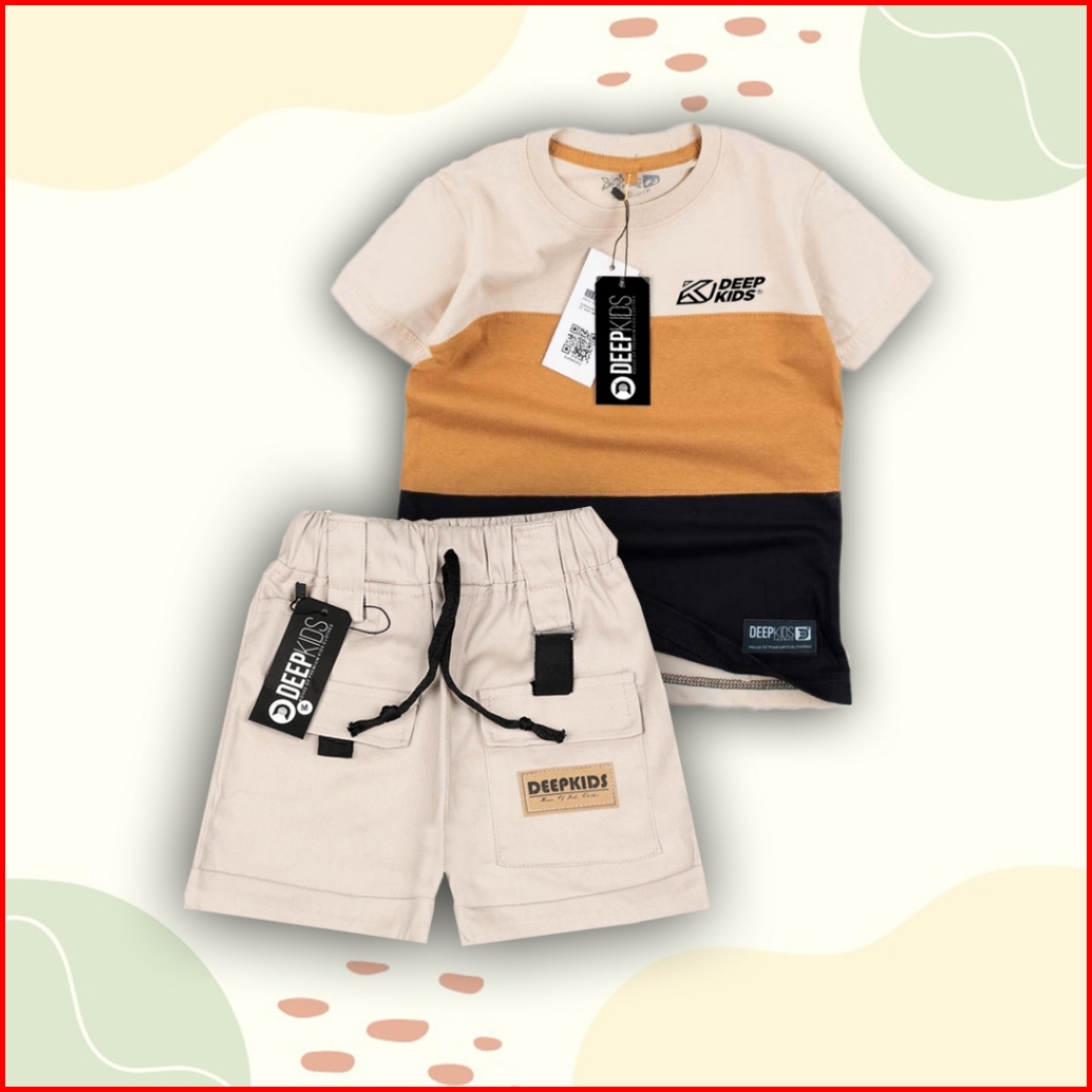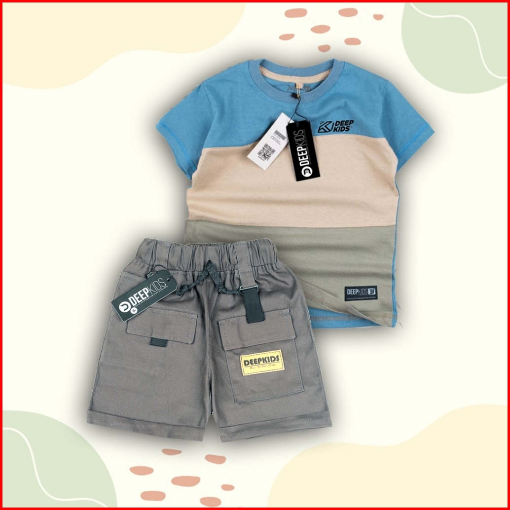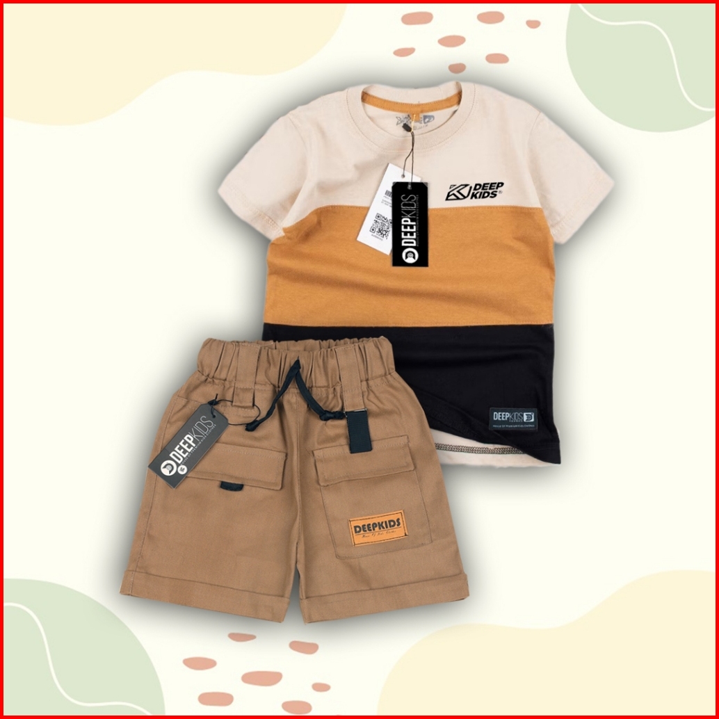 Setelan Anak Laki Laki Distro Kaos Dan Celana Pendek Cargo Usia 1-12 Tahun Set Combinasi Series