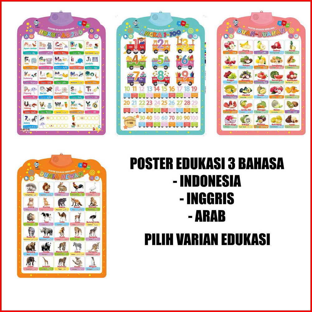 Poster Edukasi 3 Bahasa Belajar Bahasa Arab Inggris Indonesia Mainan Edukasi Poster Talking Poster