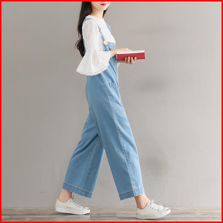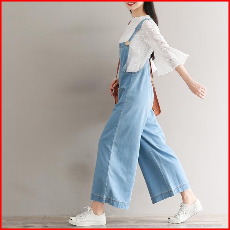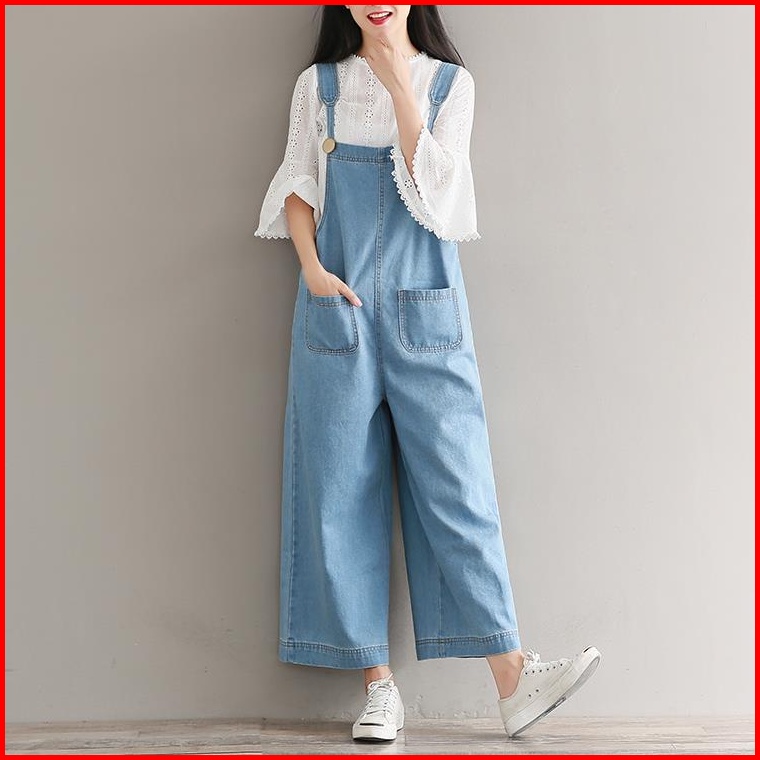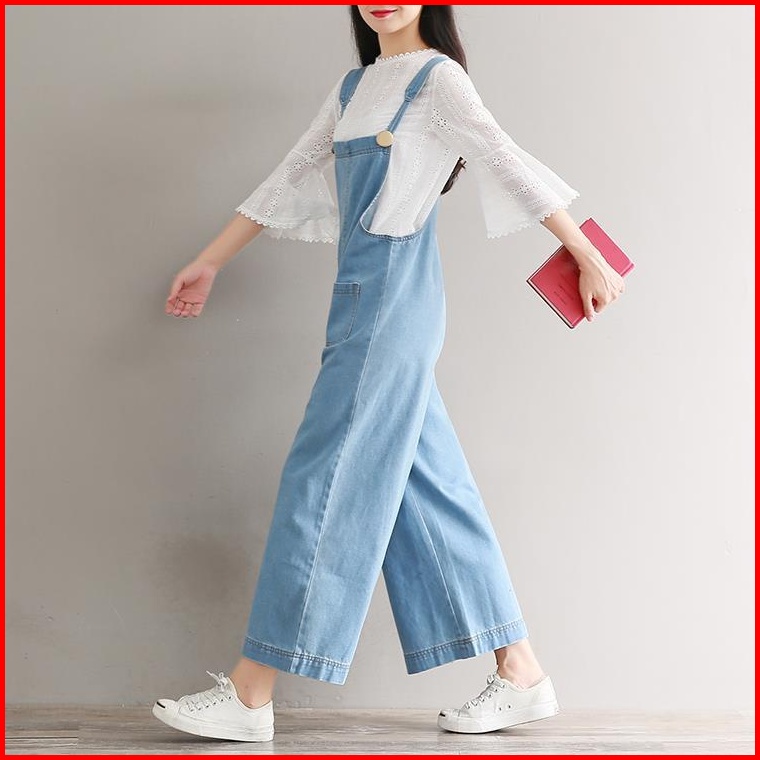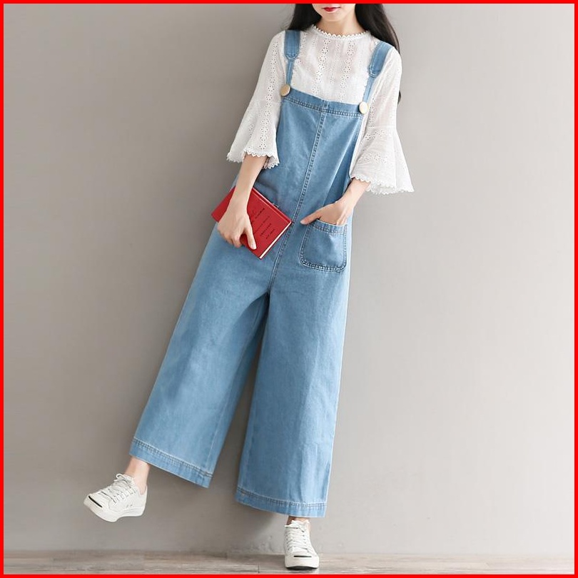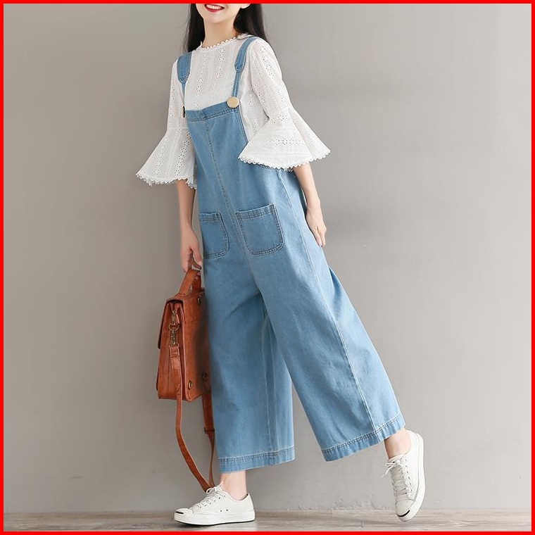 Celana Dungaree Wanita Gaya Korea Yang Longgar