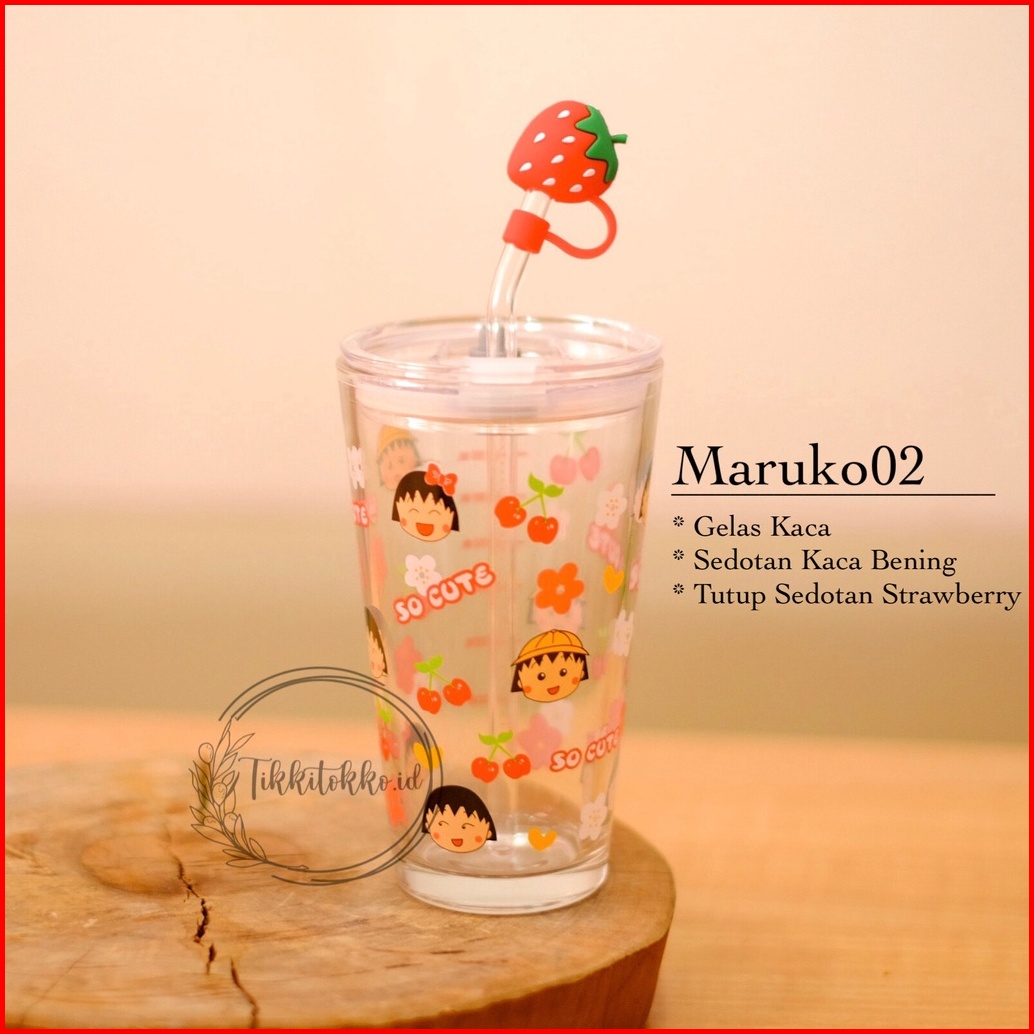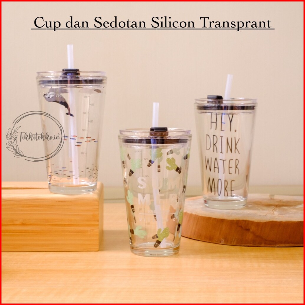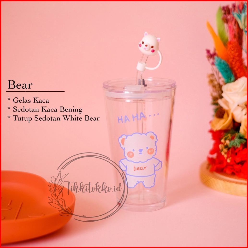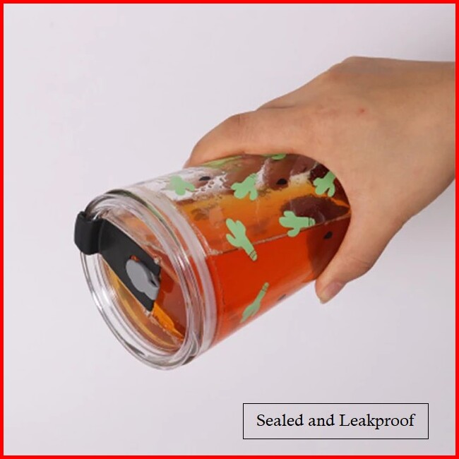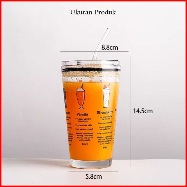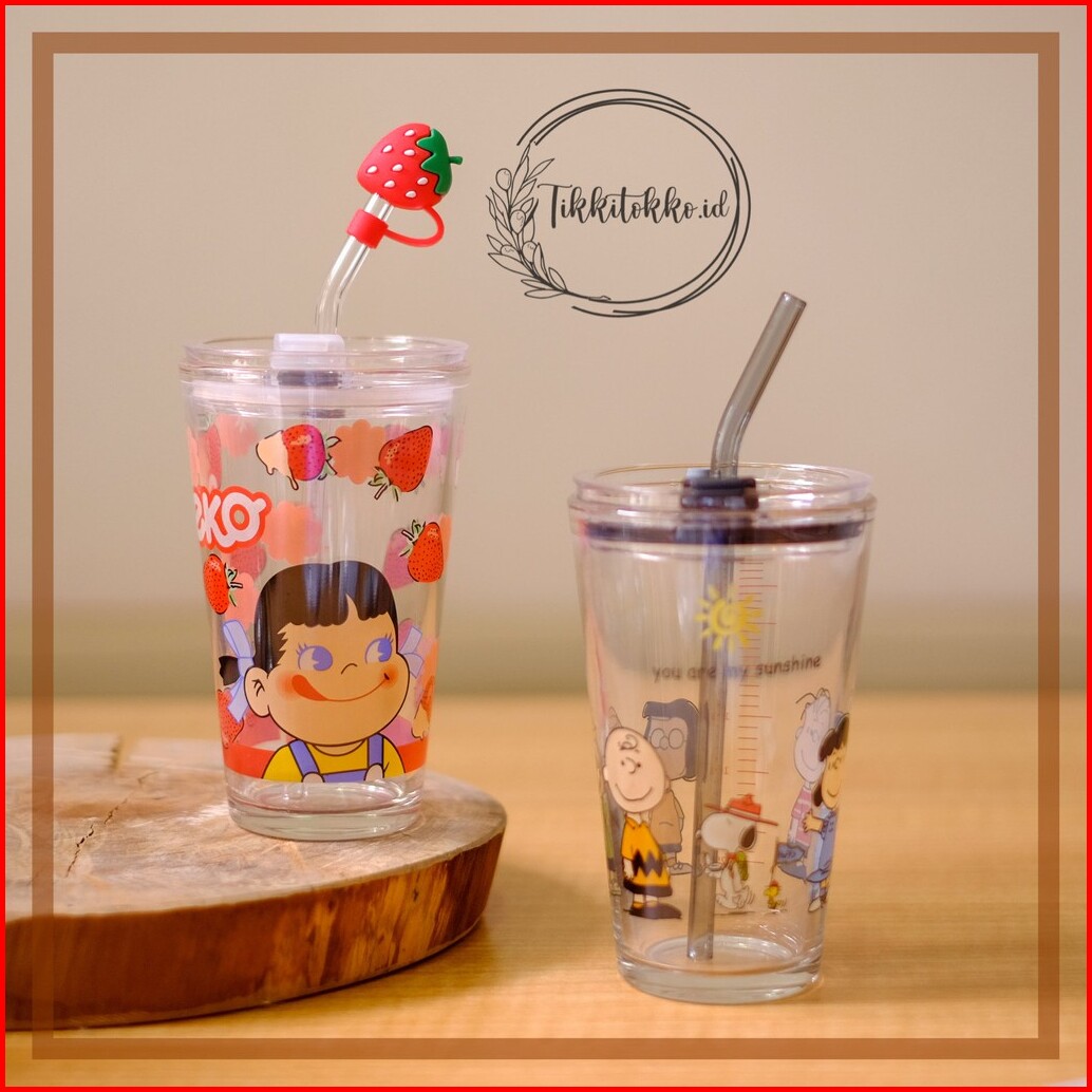 Gelas Tumblr Kaca Bening Gelas Mug Gelas Kaca Dengan Tutup Anti Bocor 450ml Botol Minum Kaca Gratis Sedotan