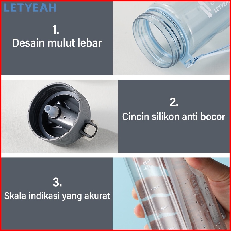Letyeah 800ml Botol Minum Olahraga Sport Botol Air Olahraga Portable Dengan Sedotan