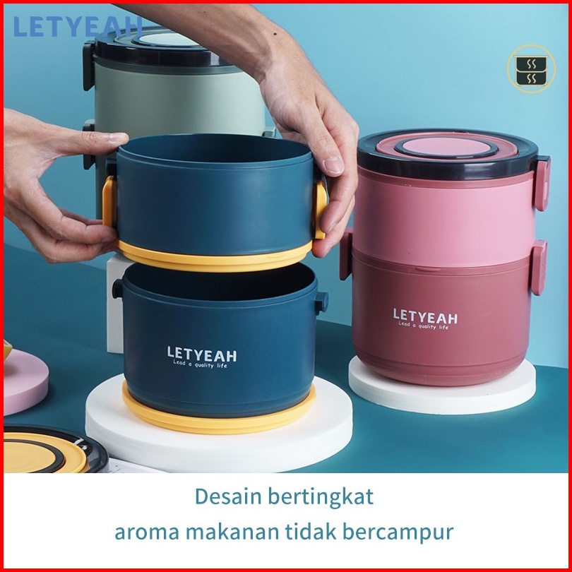 Letyeah Kotak Makan 2 Susun 1600ml Lunch Box Double-layer Anti Tumpah Portabel