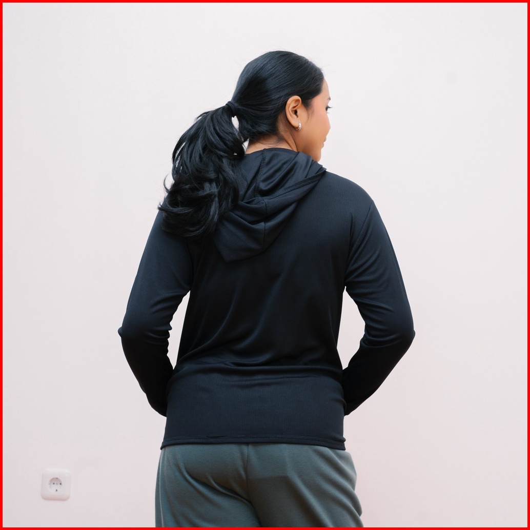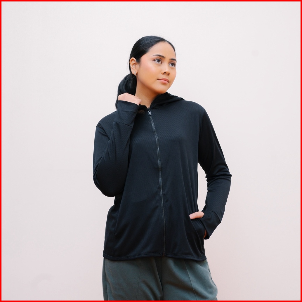 Ie.demode Jaket Olahraga Running Fitness Wanita Outer Sport Breath Technology Polos Hitam