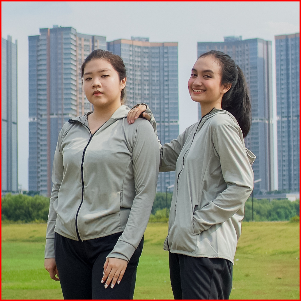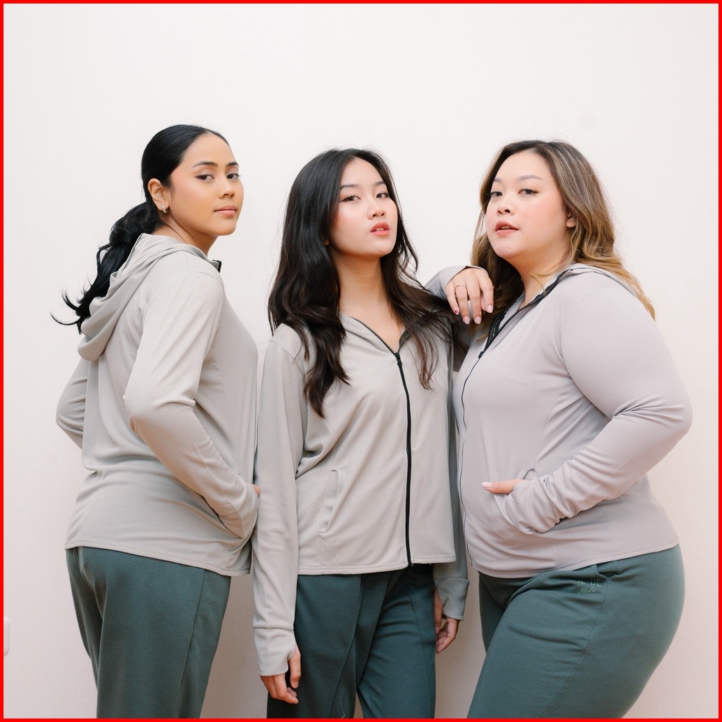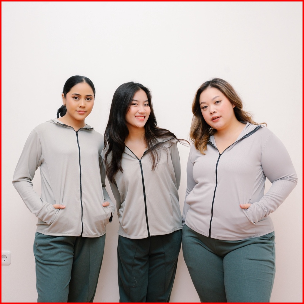 Ie.demode Jaket Olahraga Running Fitness Wanita Outer Sport Breath Technology Polos Abu Muda