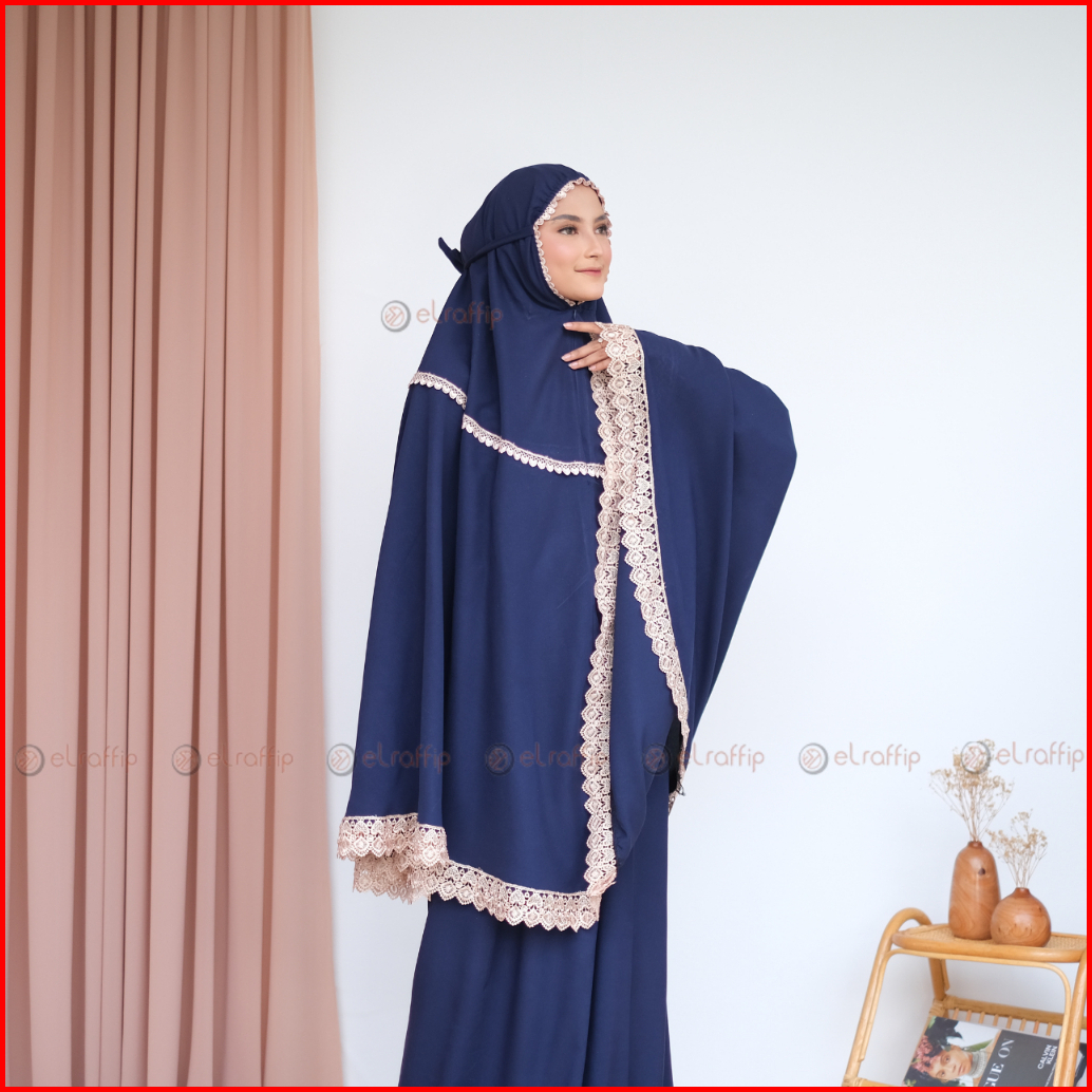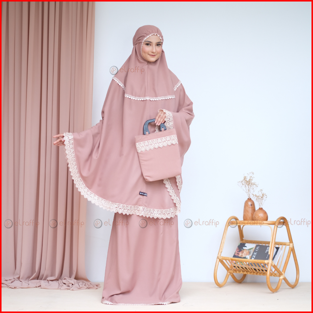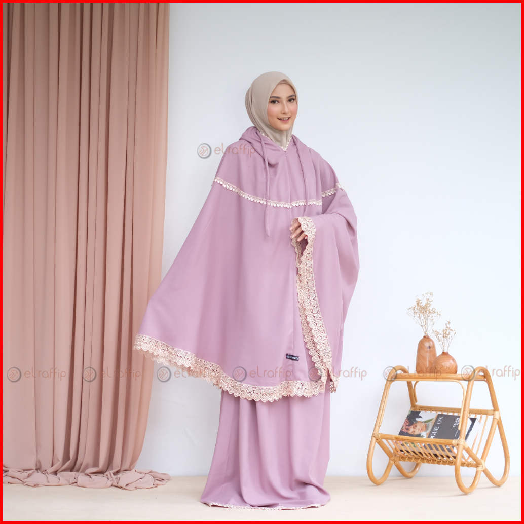 Elraffip-mukena Dewasa 2in1 Katun Polos Kombinasi Renda Bordir