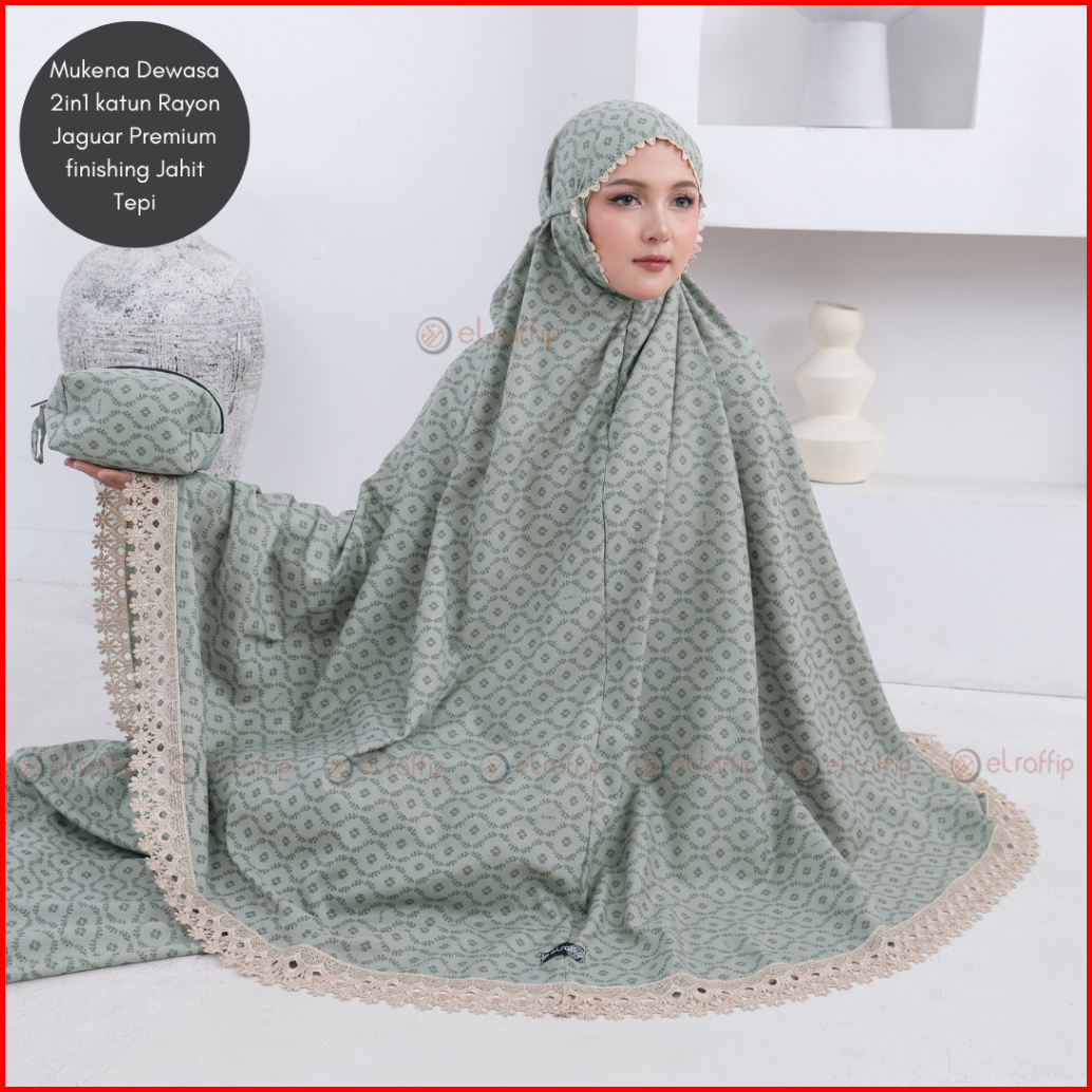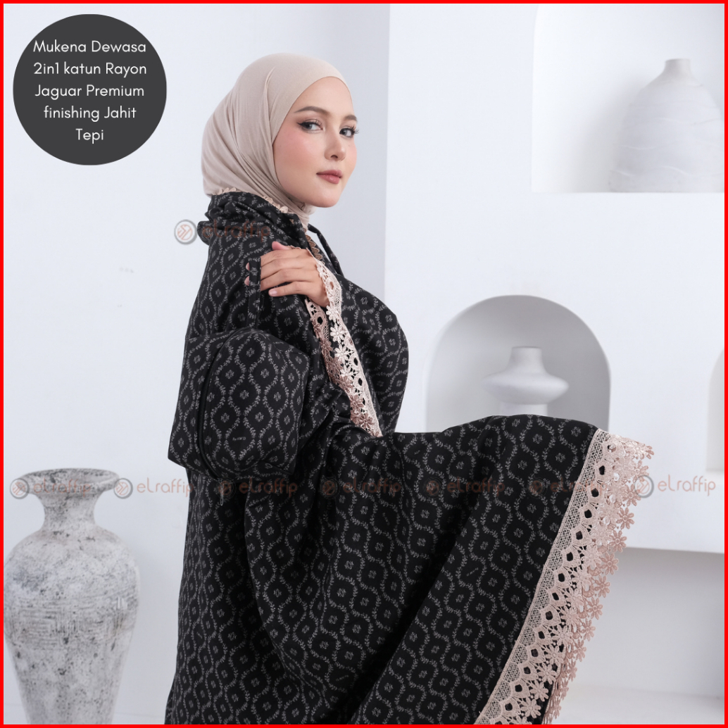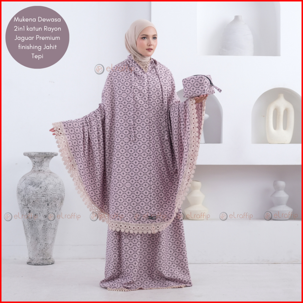 Elraffip-mukena Dewasa 2in1 Katun Polos Kombinasi Renda Bordir
