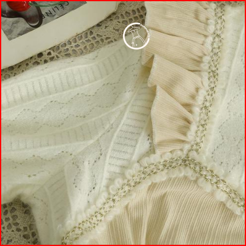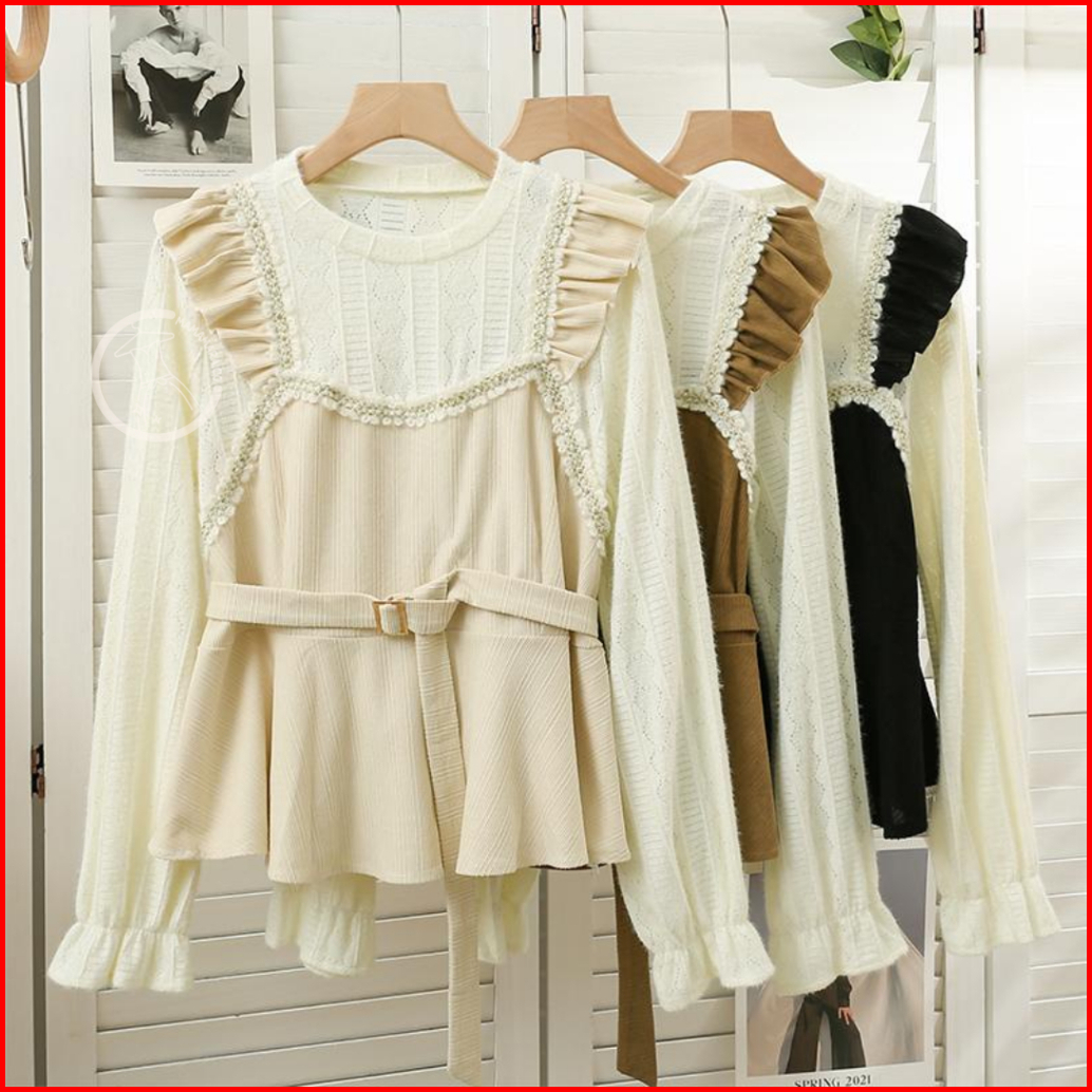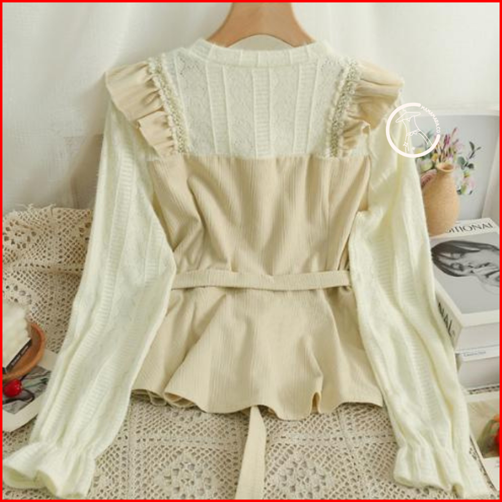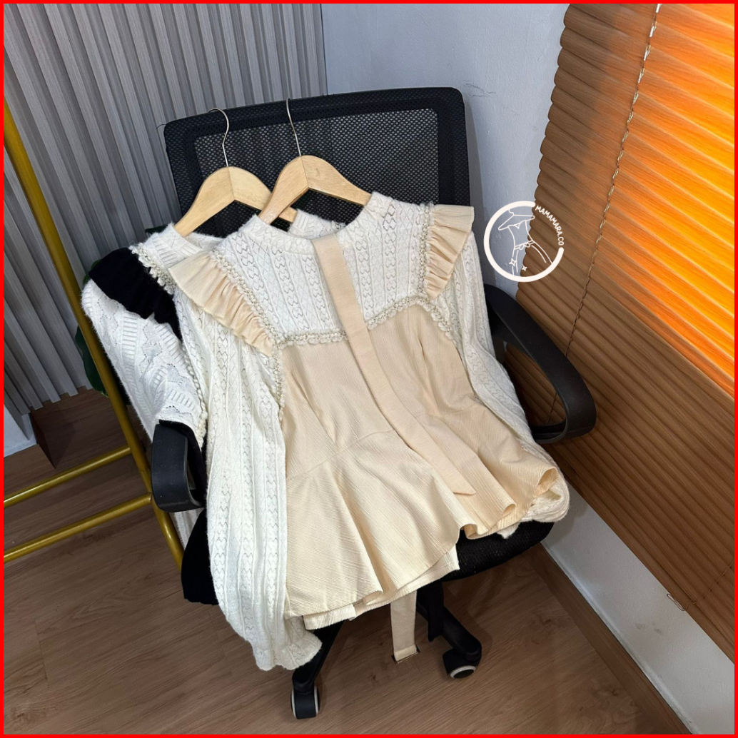 Mamamara - Atasan Wanita Ala Vintage Korea Retro Round Neck Ruffle