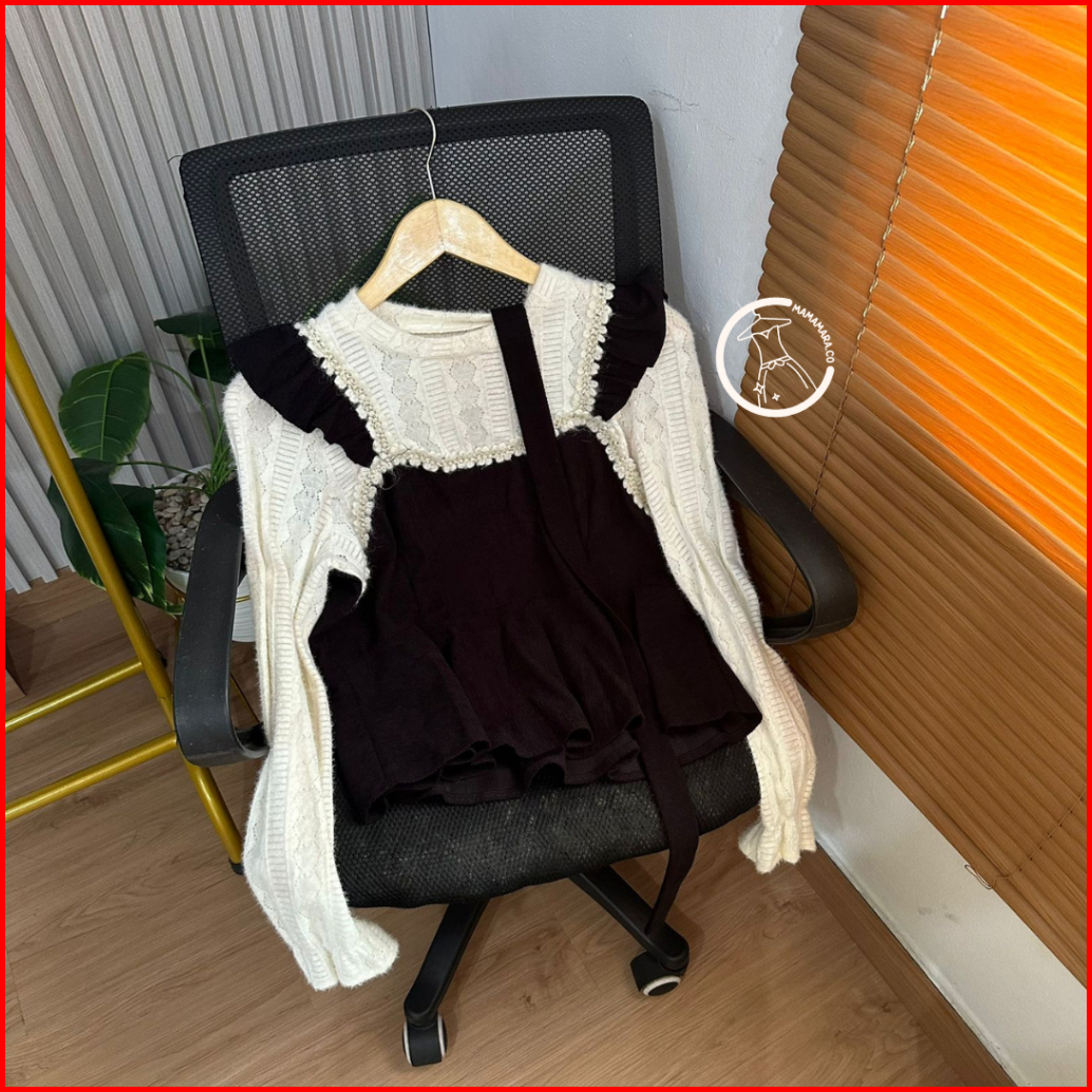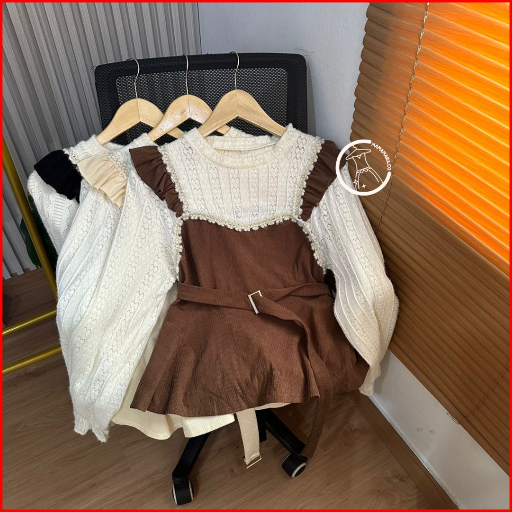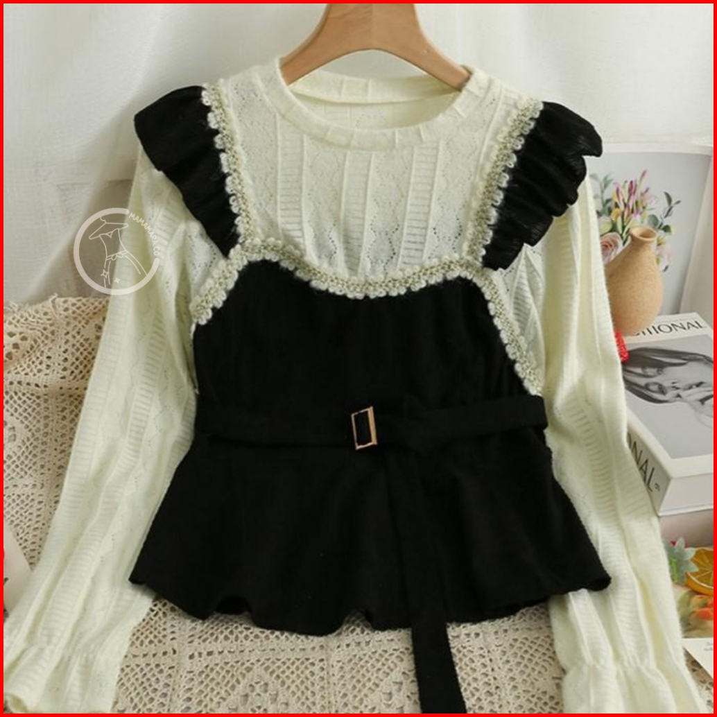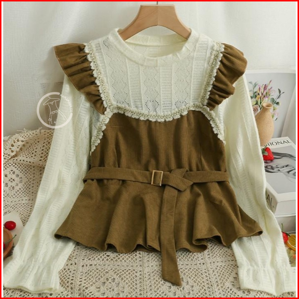 Mamamara - Atasan Wanita Ala Vintage Korea Retro Round Neck Ruffle