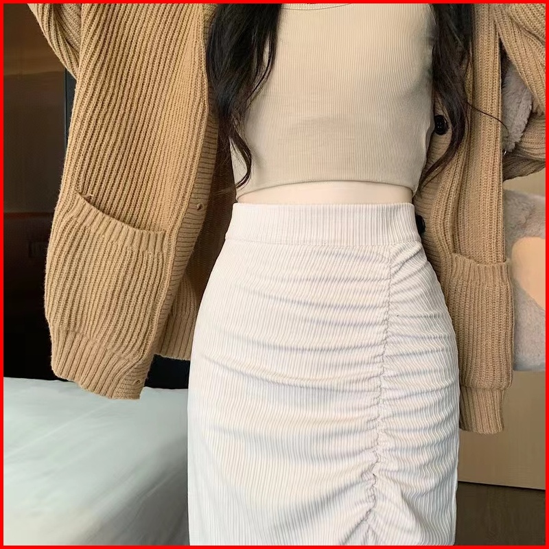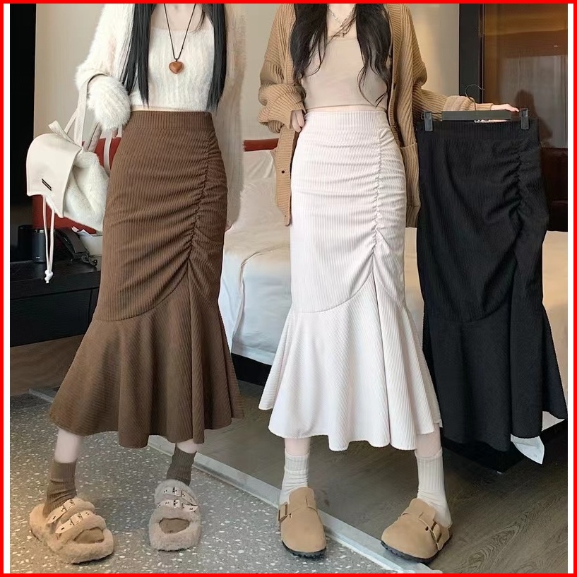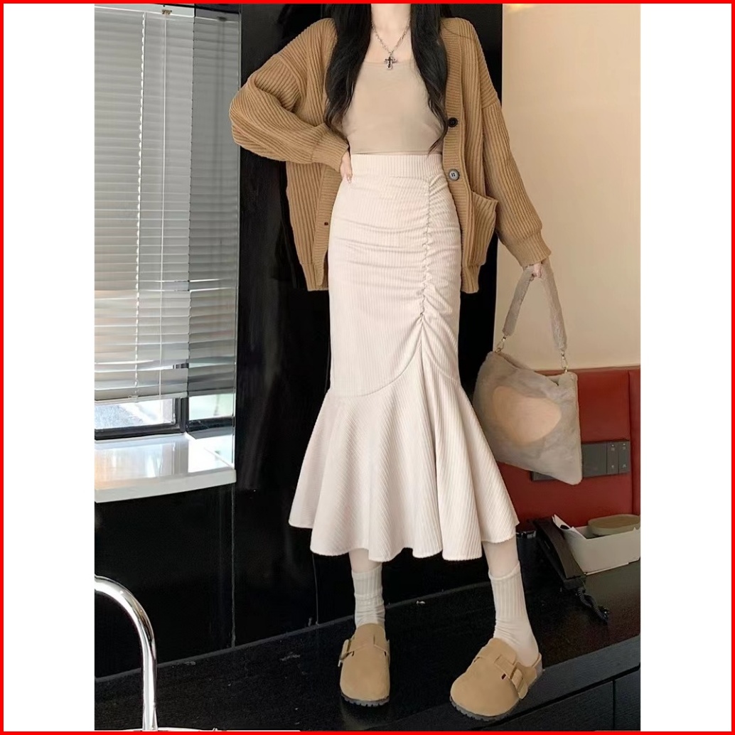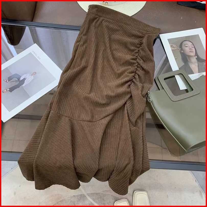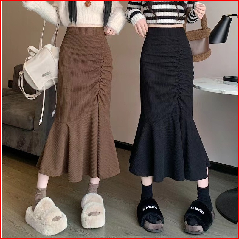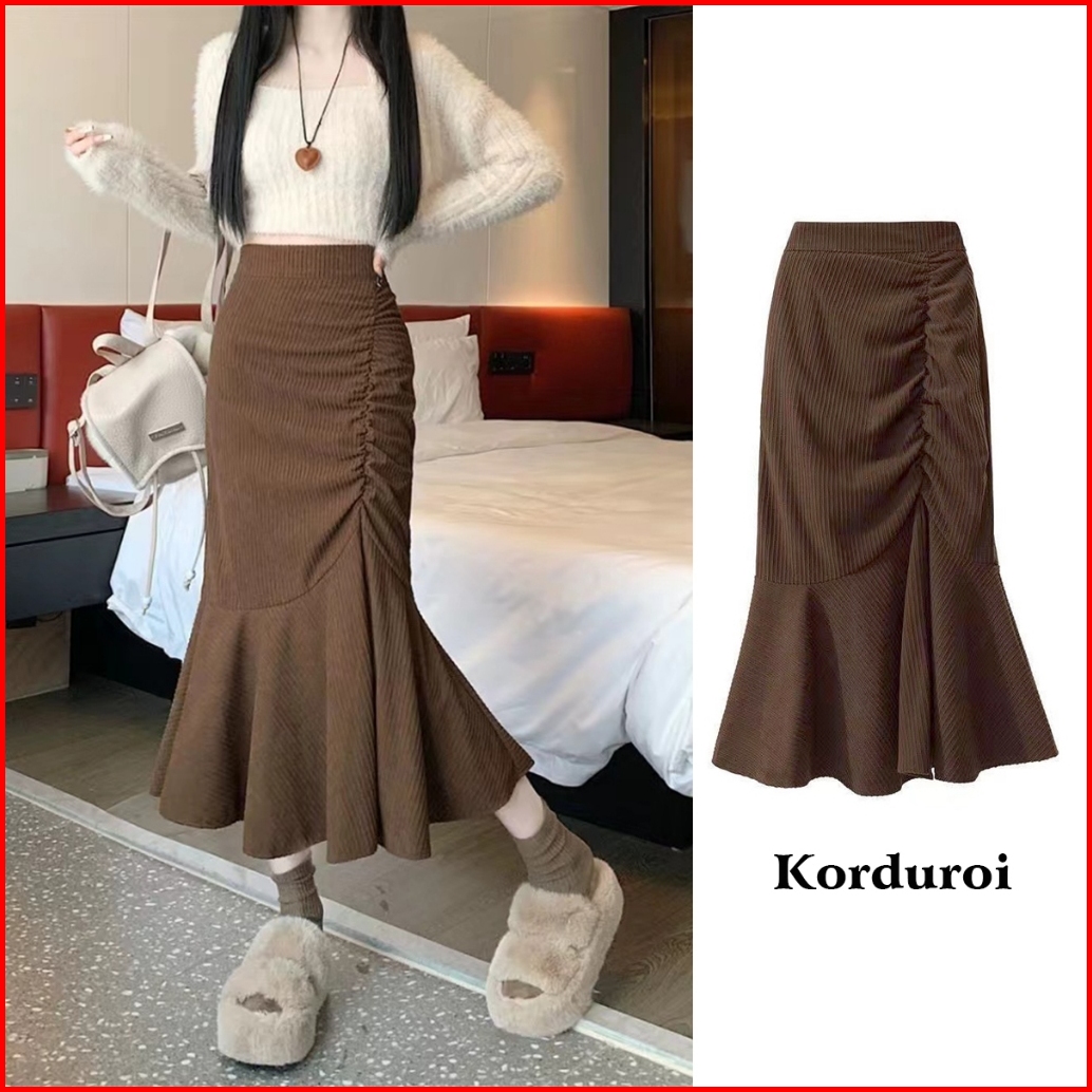 Wanita Idrok Korean Style Rok Corduroy Rok Plisket Rok Coklat Vintage Rok Midi Rok Wanita Kekinian Rok Plisket Premium