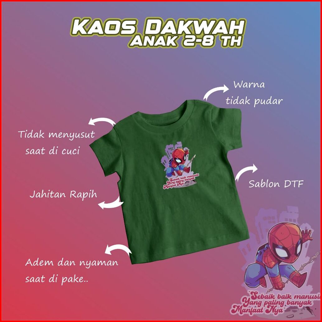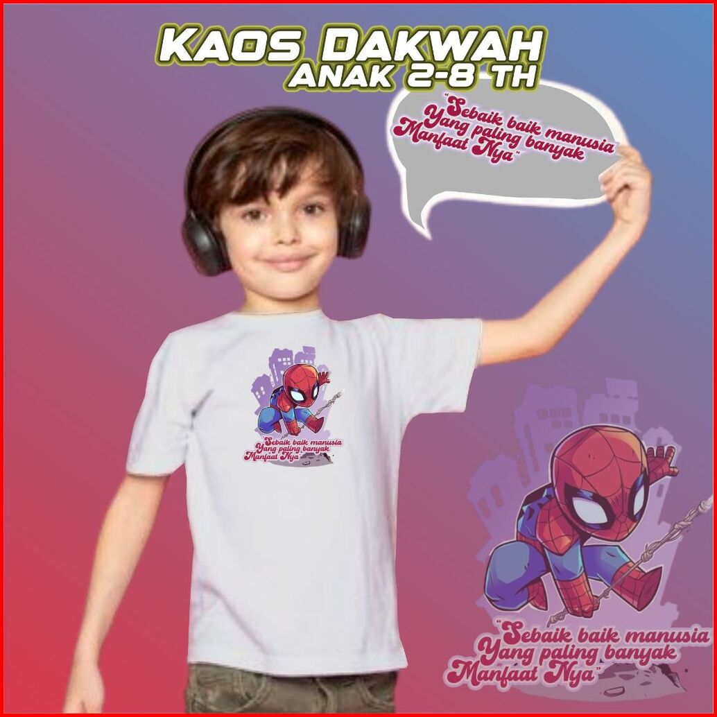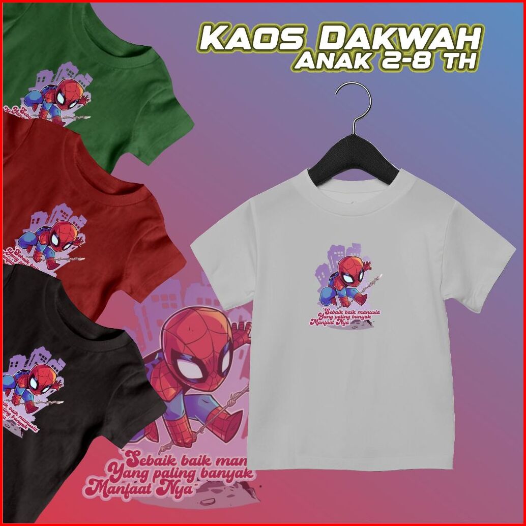 Kaos Dakwah Anak Laki Laki Muslim Islami Karakter Spiderman Font Sebaik Baik Manusia 2-8 Tahun Katun Combed