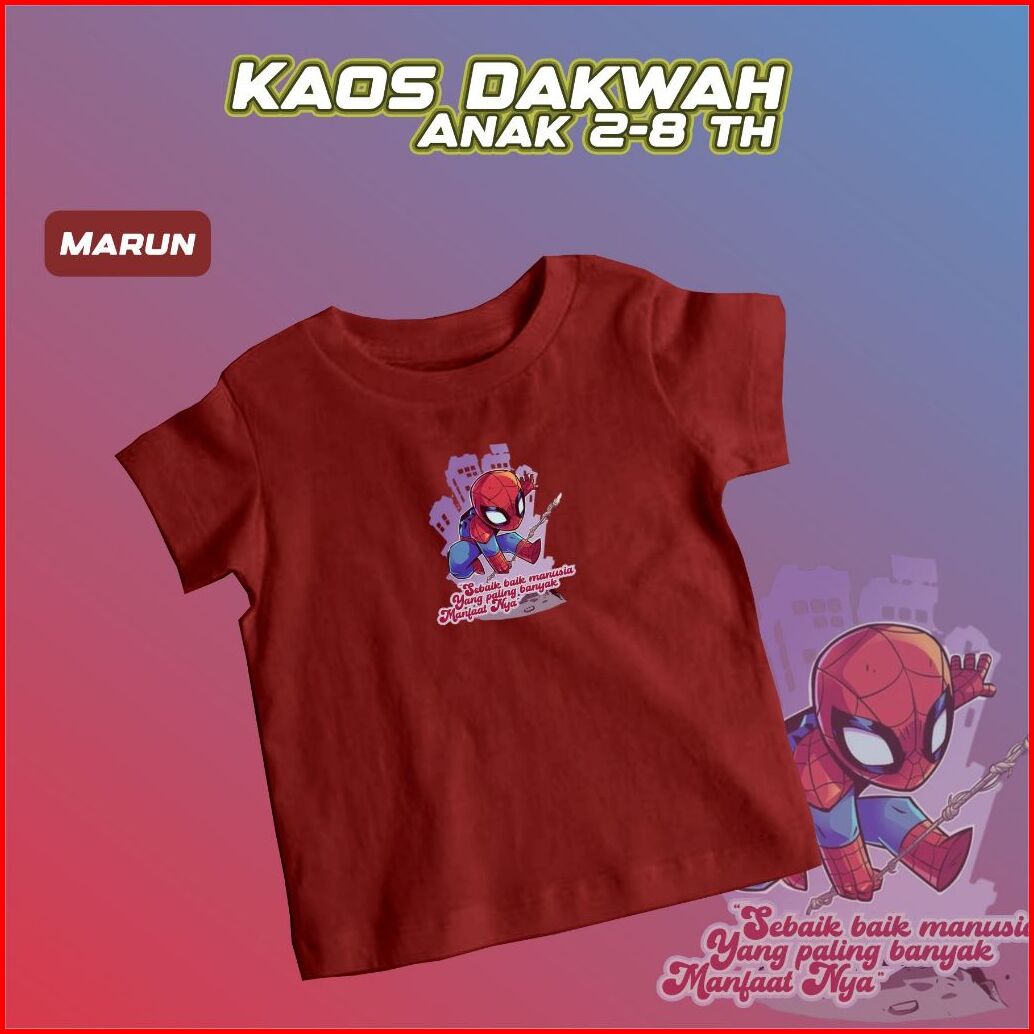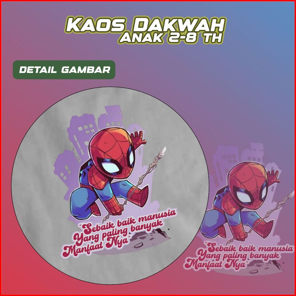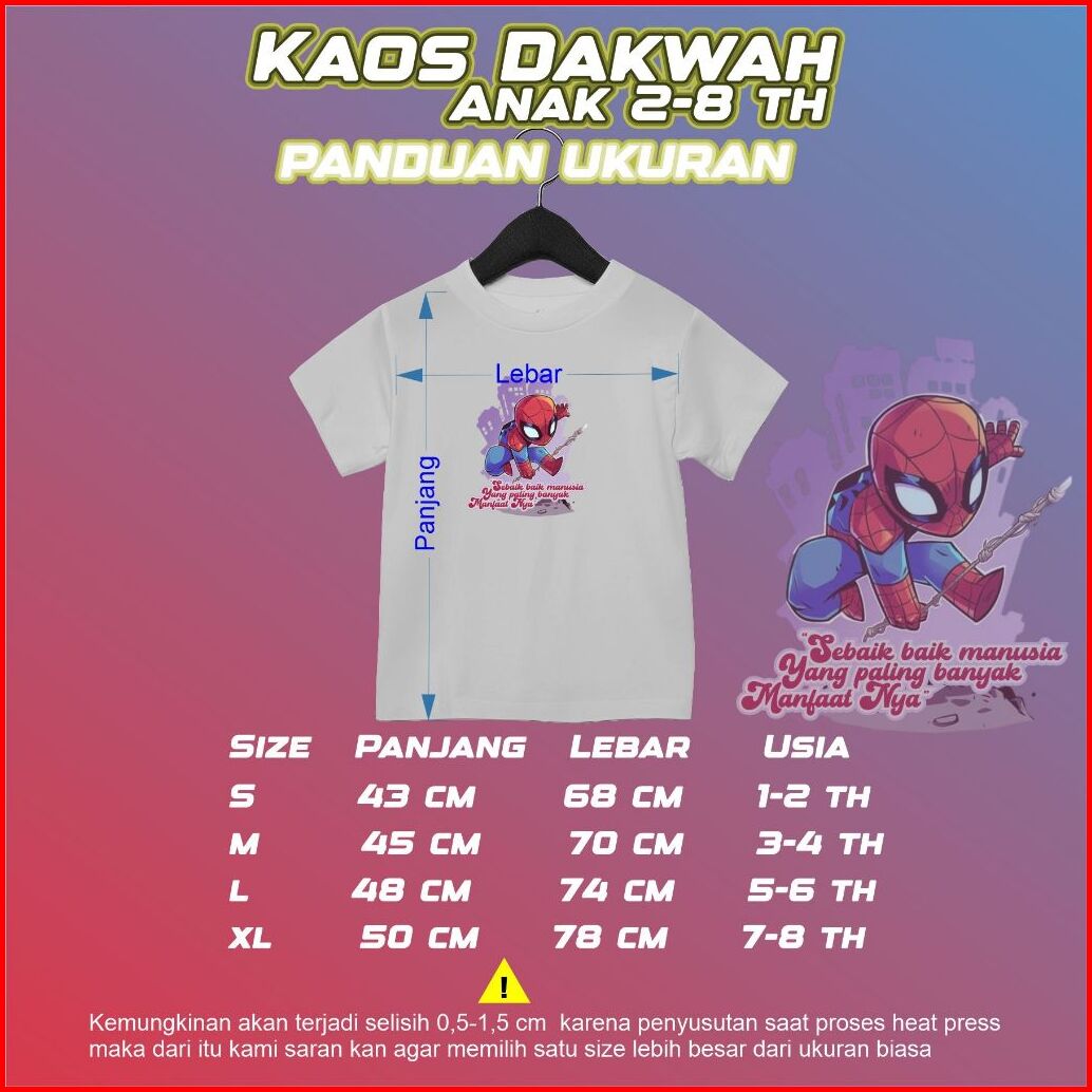 Kaos Dakwah Anak Laki Laki Muslim Islami Karakter Spiderman Font Sebaik Baik Manusia 2-8 Tahun Katun Combed