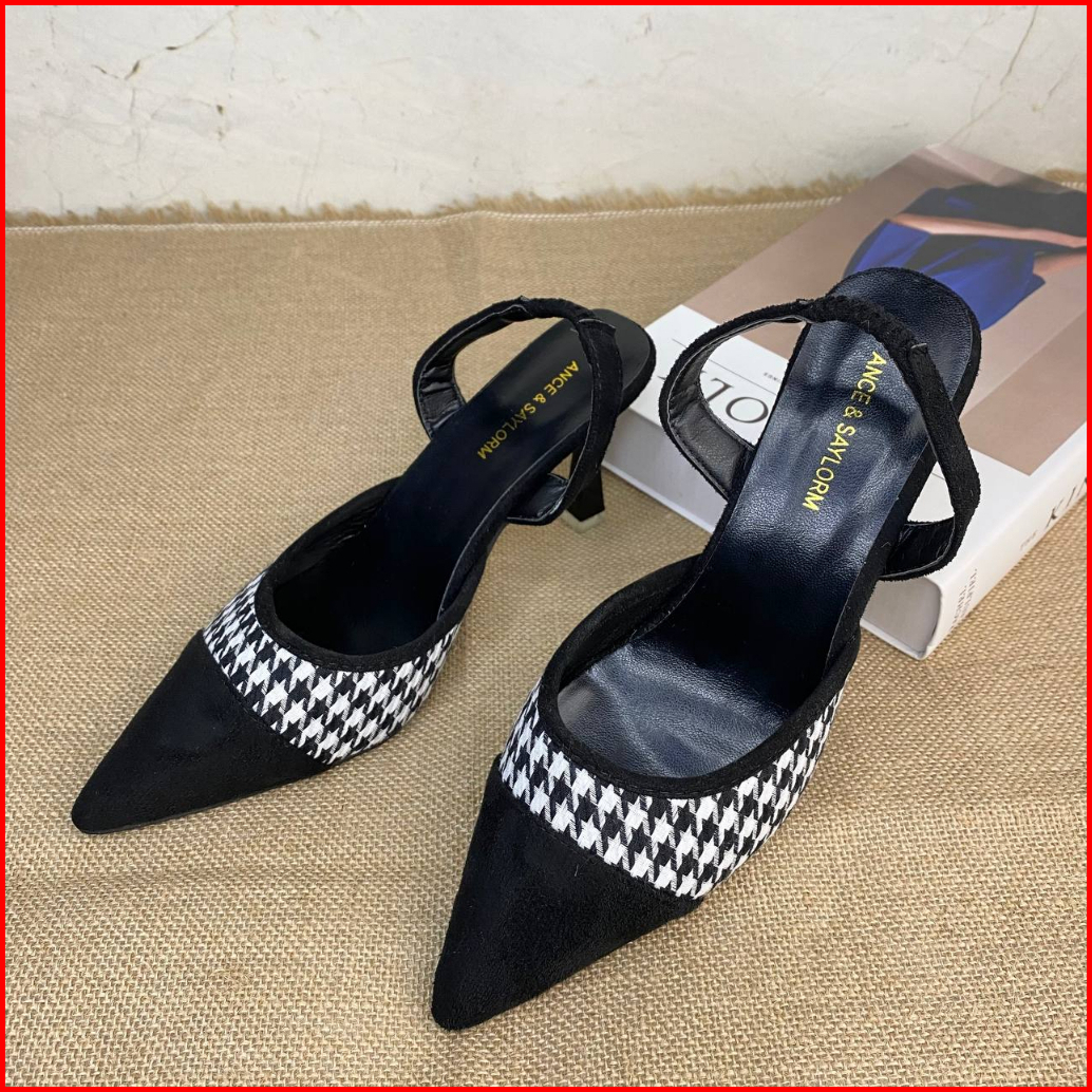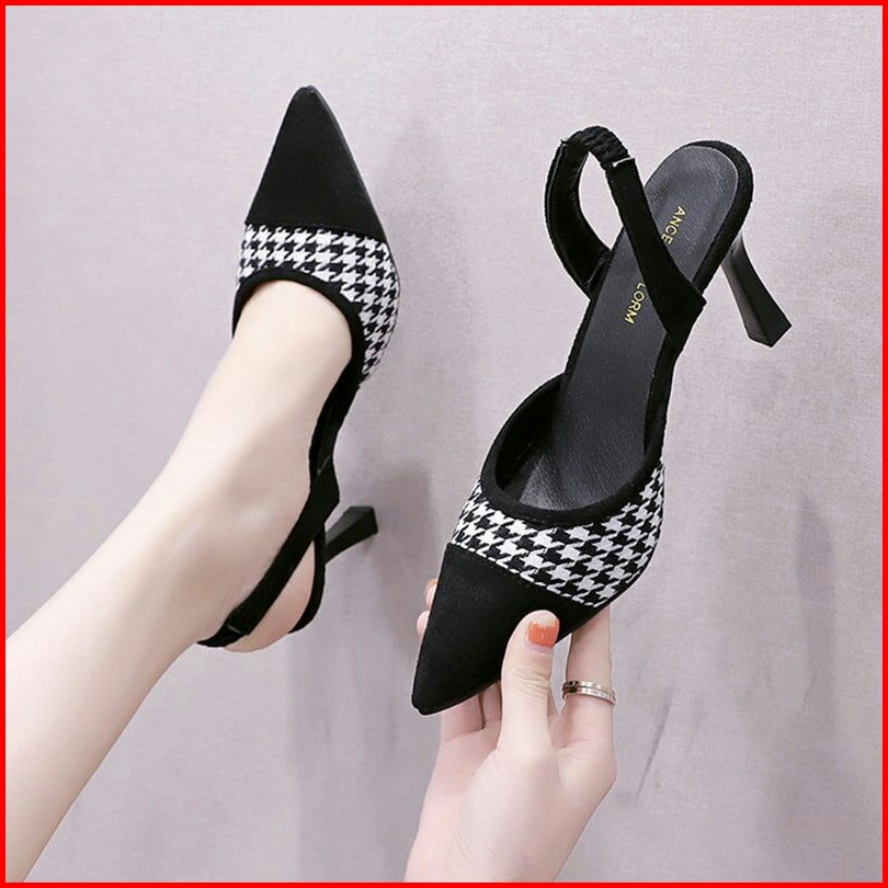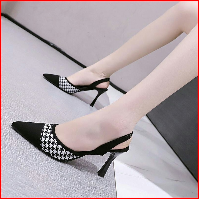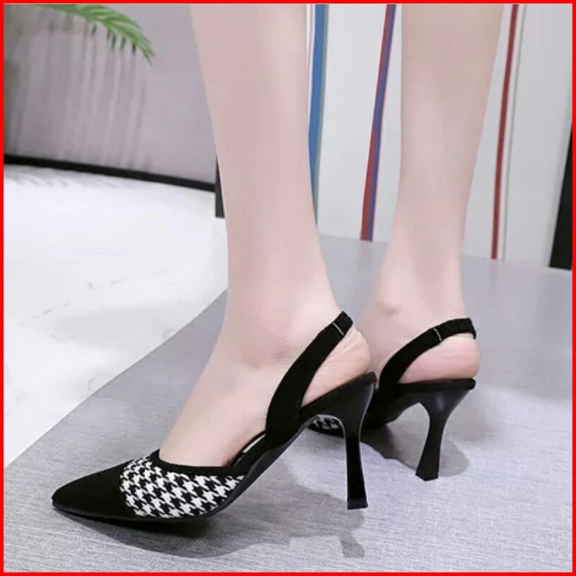 6721 Heels Runcing Wanita Fashion Import Hak Tinggi Motif Kotak Ready Jakarta With Box