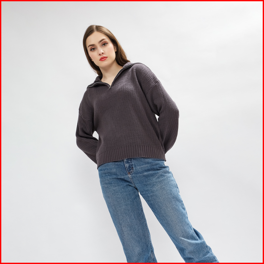 Nigoo Bora Zip Up Knit Sweater Rajut Wanita