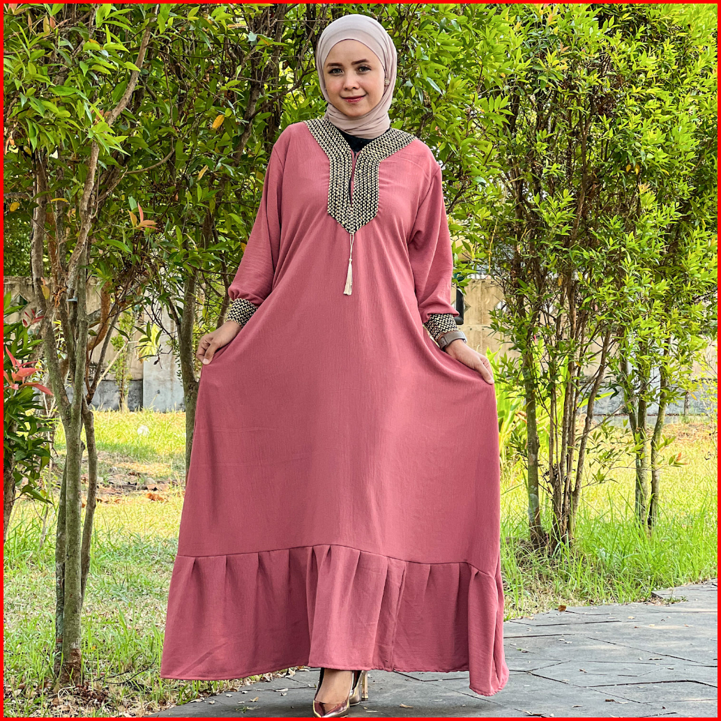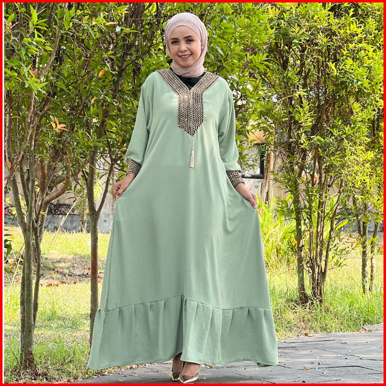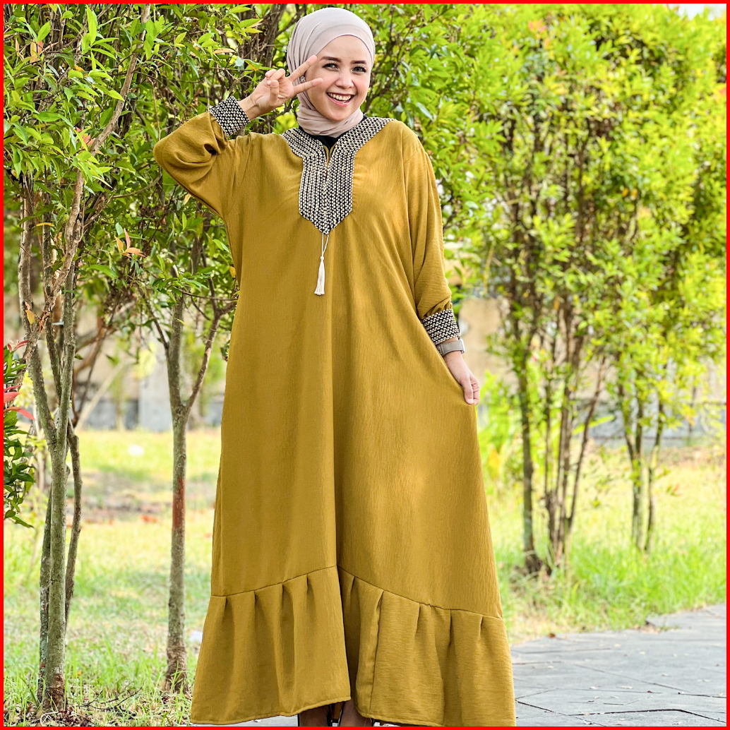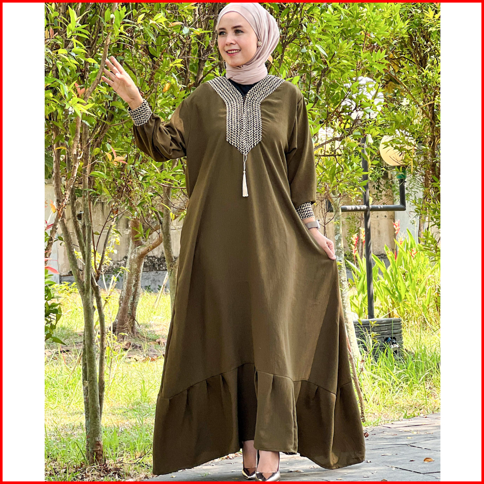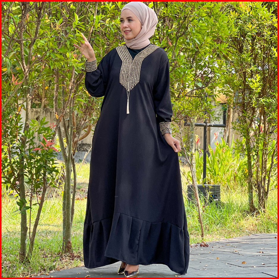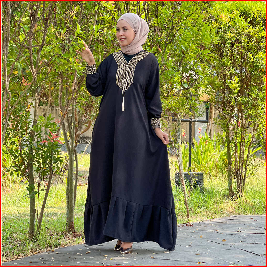 Dress Abaya Renda Sultan Crincle Airflow Busui Gamis Wanita Muslim Dress Arab