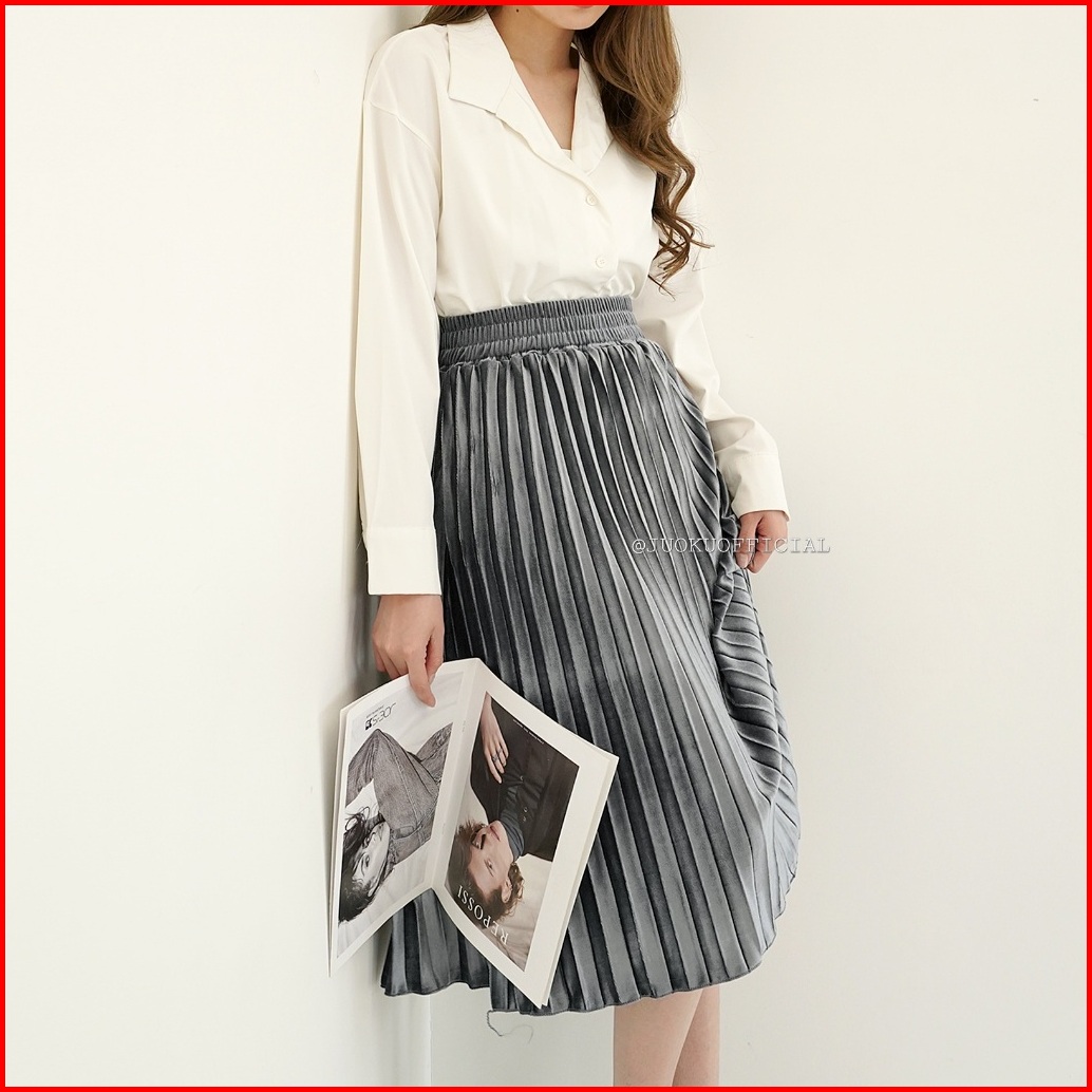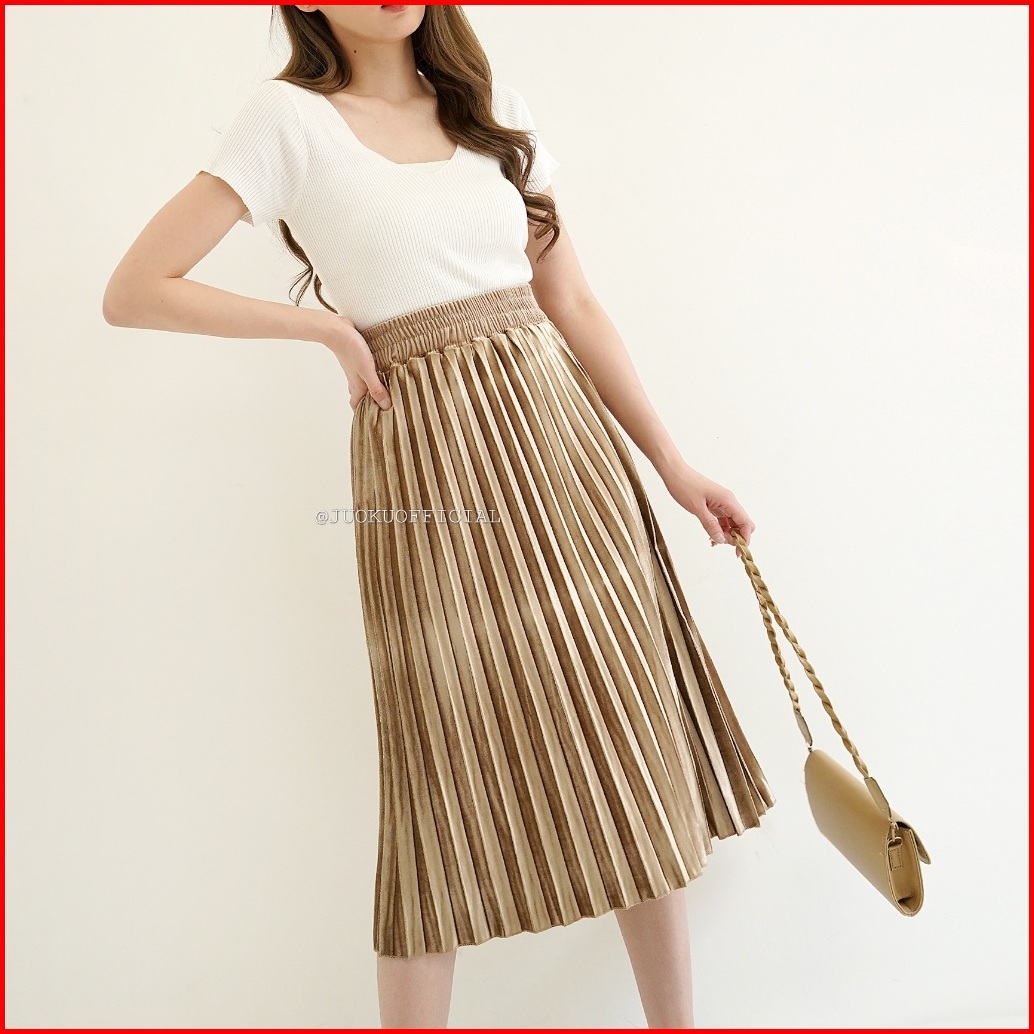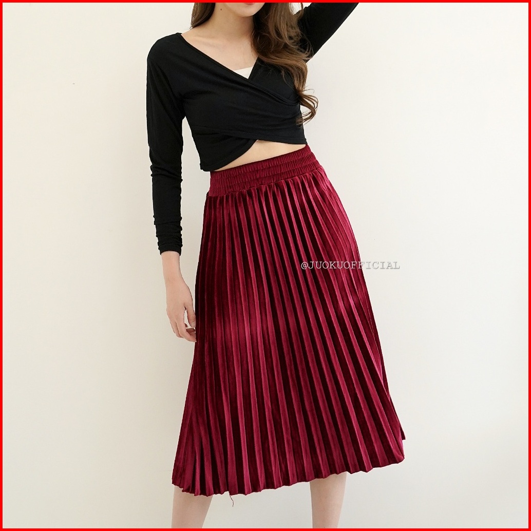 Rok Midi Plisket Bludru Rok Bludru Midi Rok Bludru Velvet Rok Bludru Premium Pleated Skirt