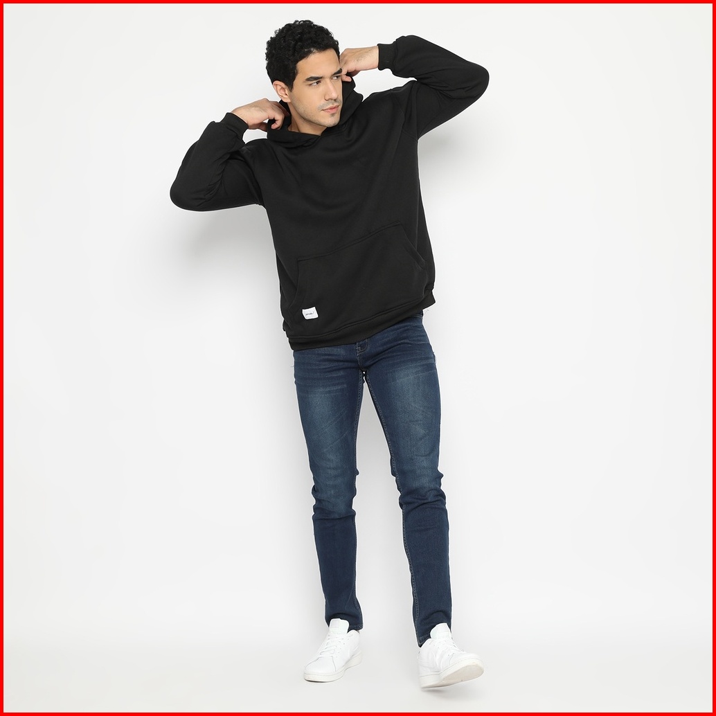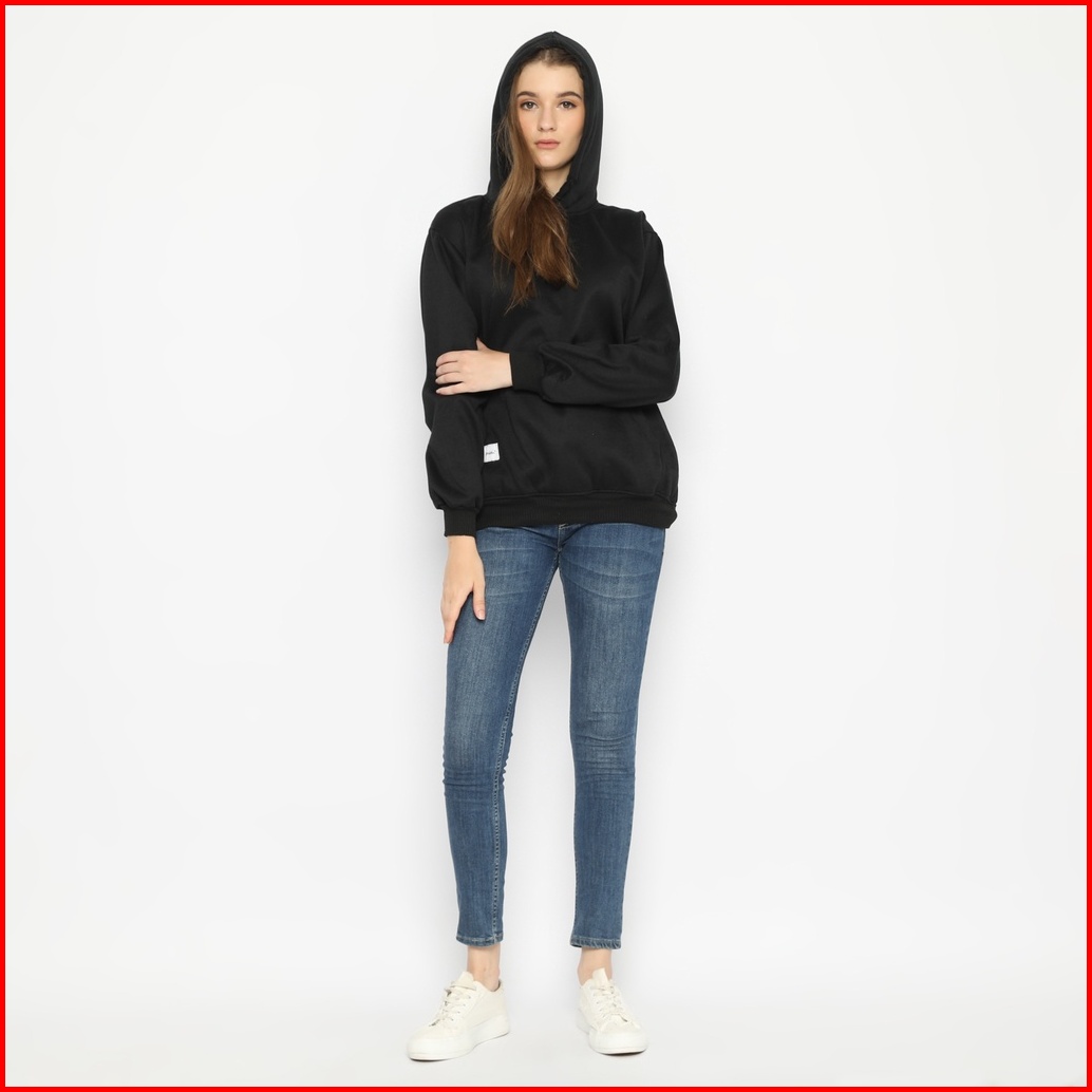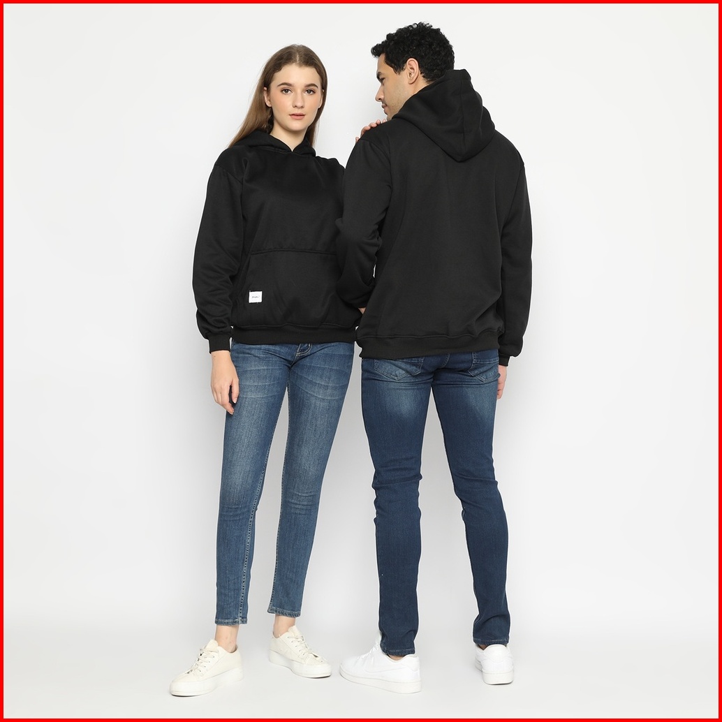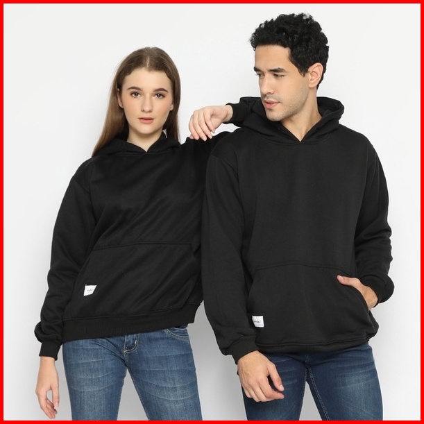 Hoodieku Hoodie Jumper Basic Fleece Tebal Polos Pria Wanita Unisex - Hitam
