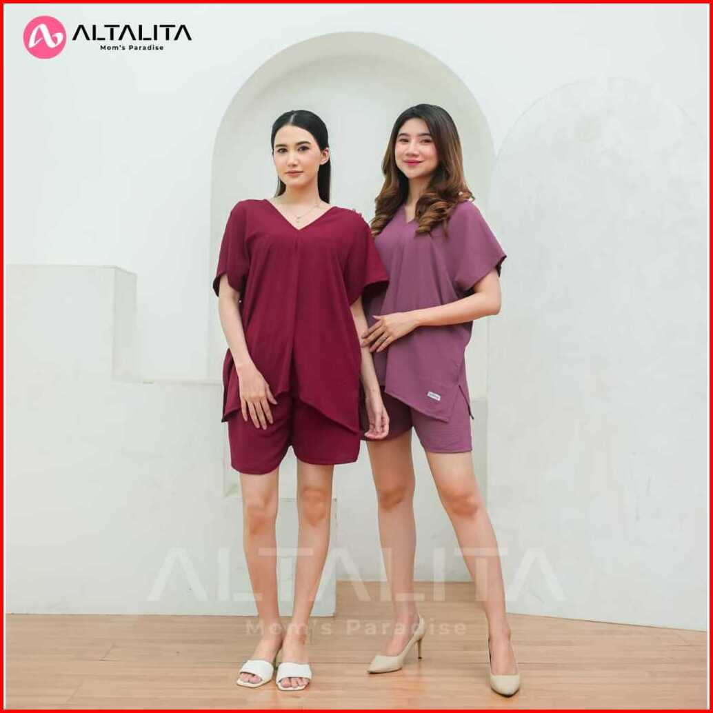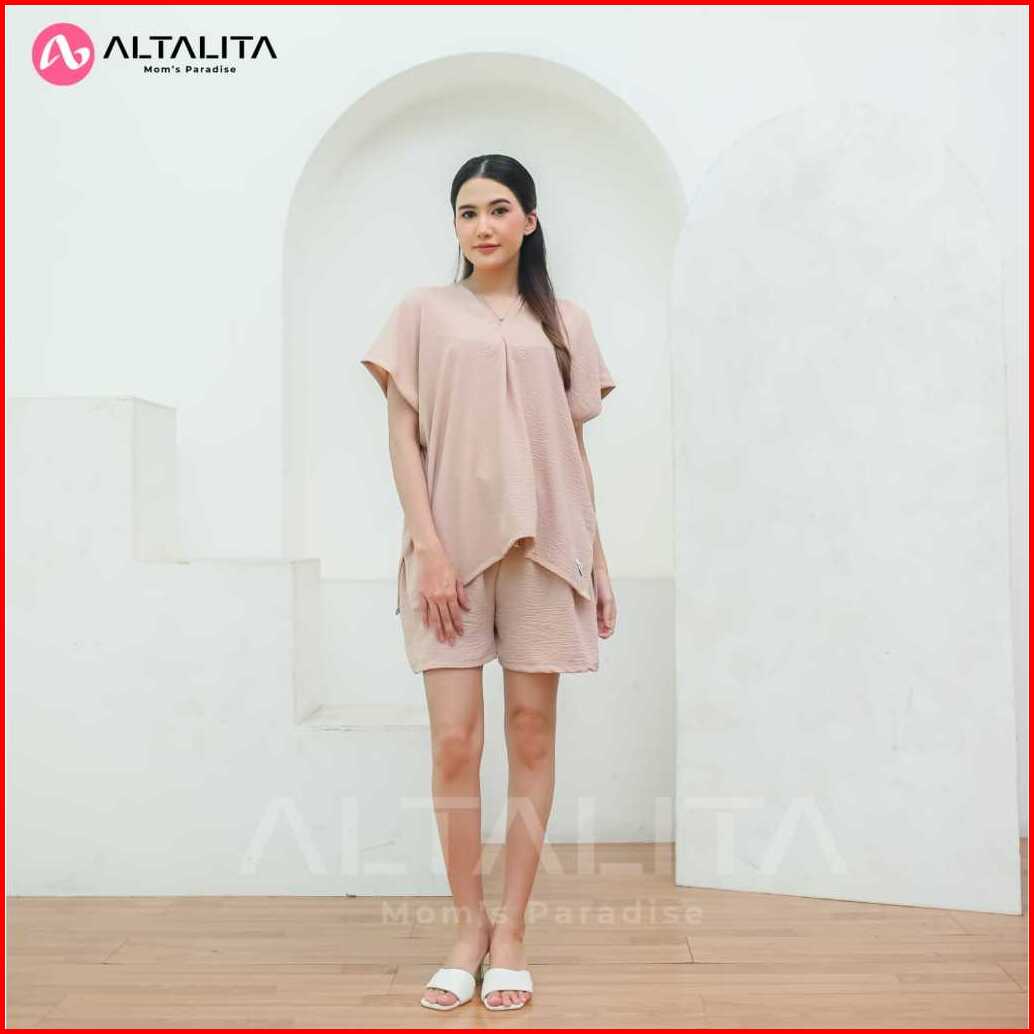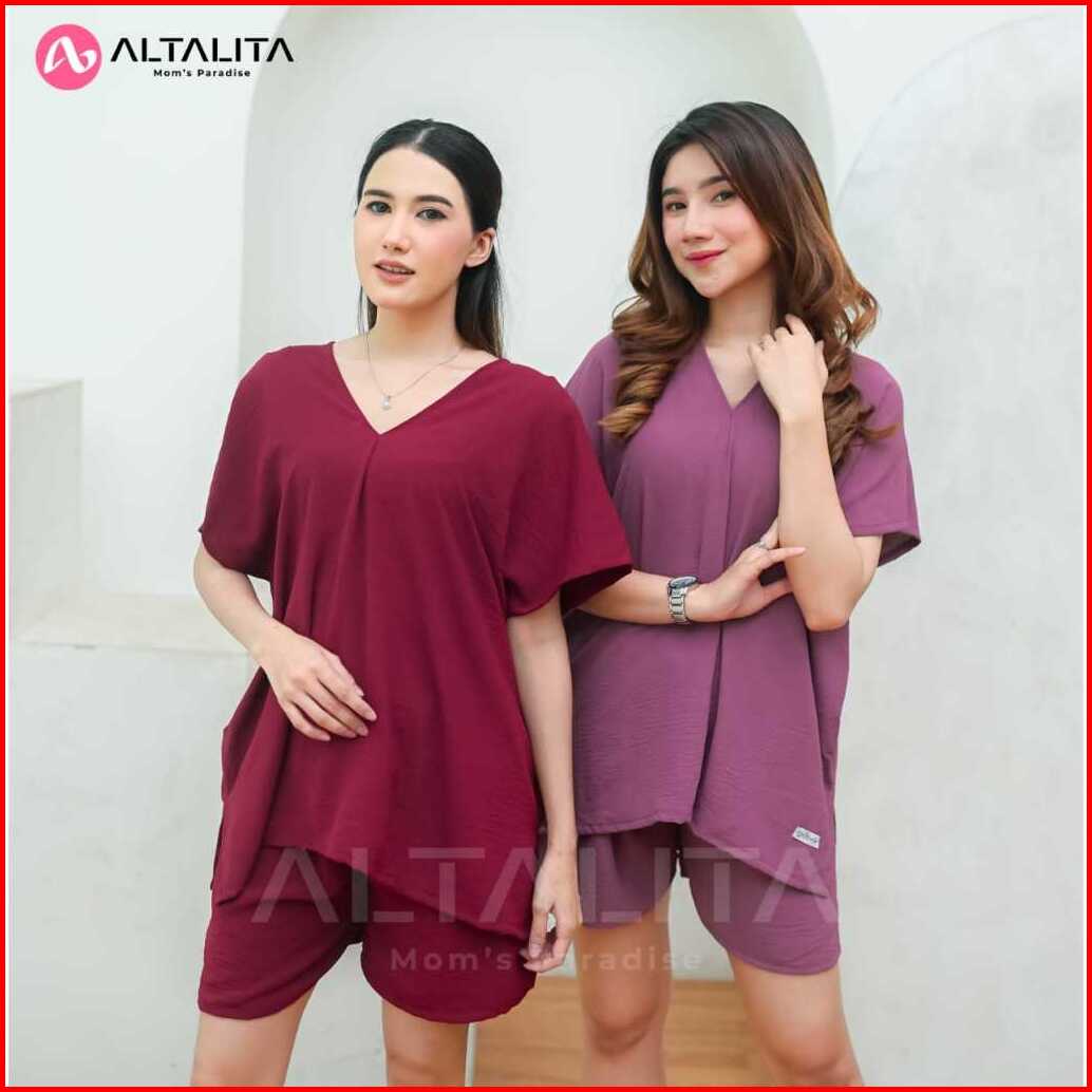 Altalita - One Set Cringkle Jumbo Setelan Baju Tidur Wanita Dewasa Pendek V Neck Terbaru