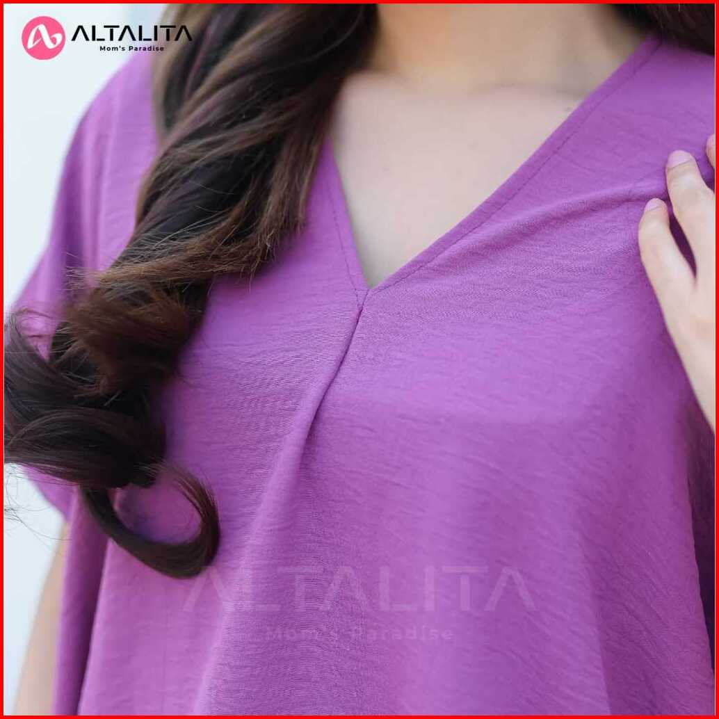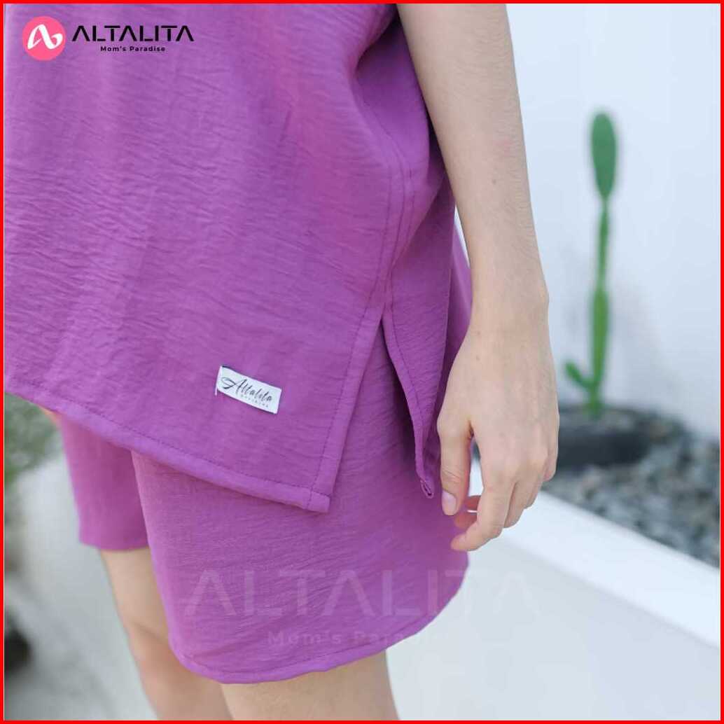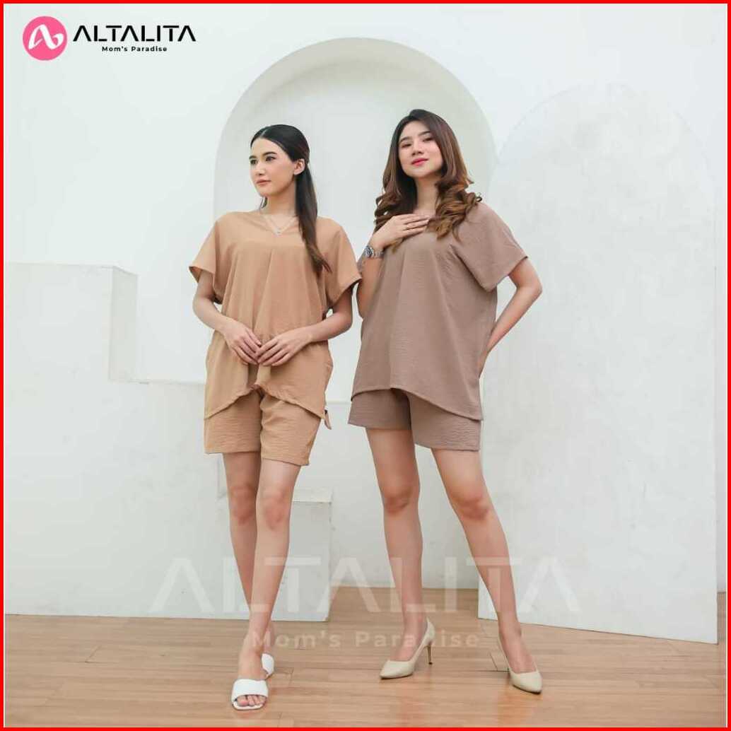 Altalita - One Set Cringkle Jumbo Setelan Baju Tidur Wanita Dewasa Pendek V Neck Terbaru