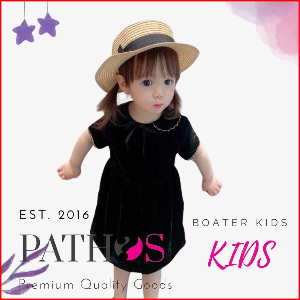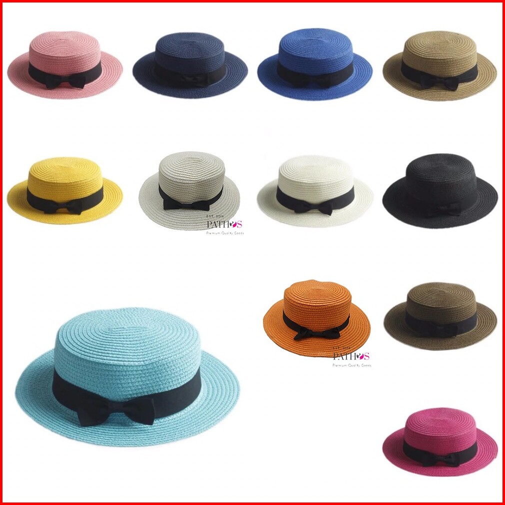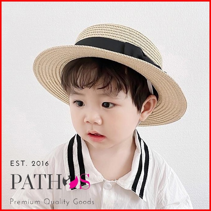 Topi Anak Boater Pantai Pita Papper Kids Child Import Topi Bulat Pantai Flat Datar Pesta Pathos