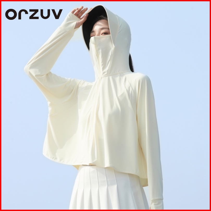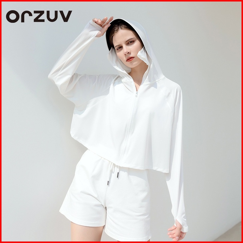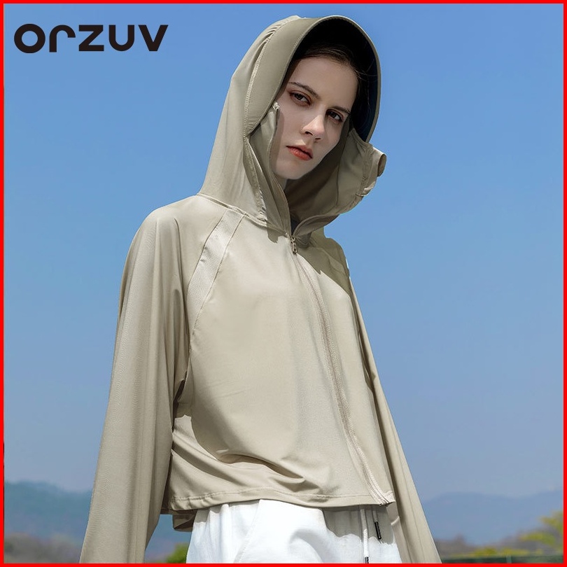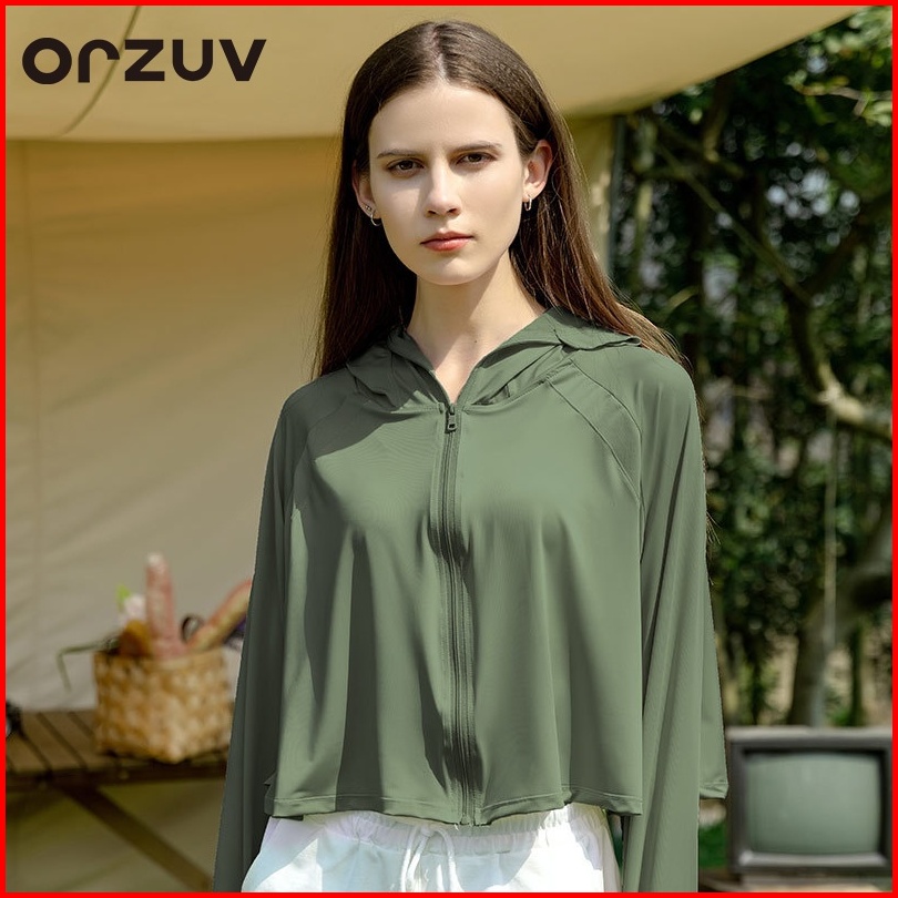 Orzuv Jaket Anti Uv Wanita Pinggiran Topi Lengan Panjang Wanita Jaket Parasut Olahraga Upf50