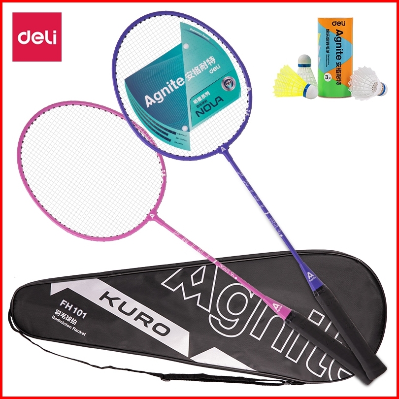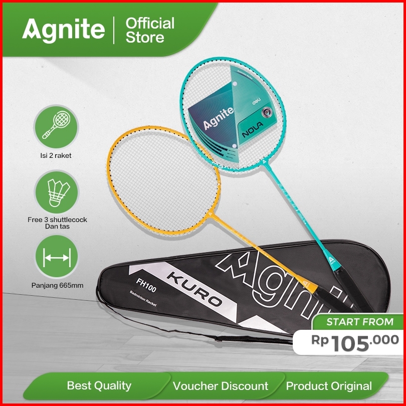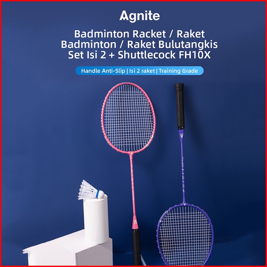 Agnite Badminton Racket Raket Badminton Raket Bulutangkis Set Isi 2 Shuttlecock Fh10x