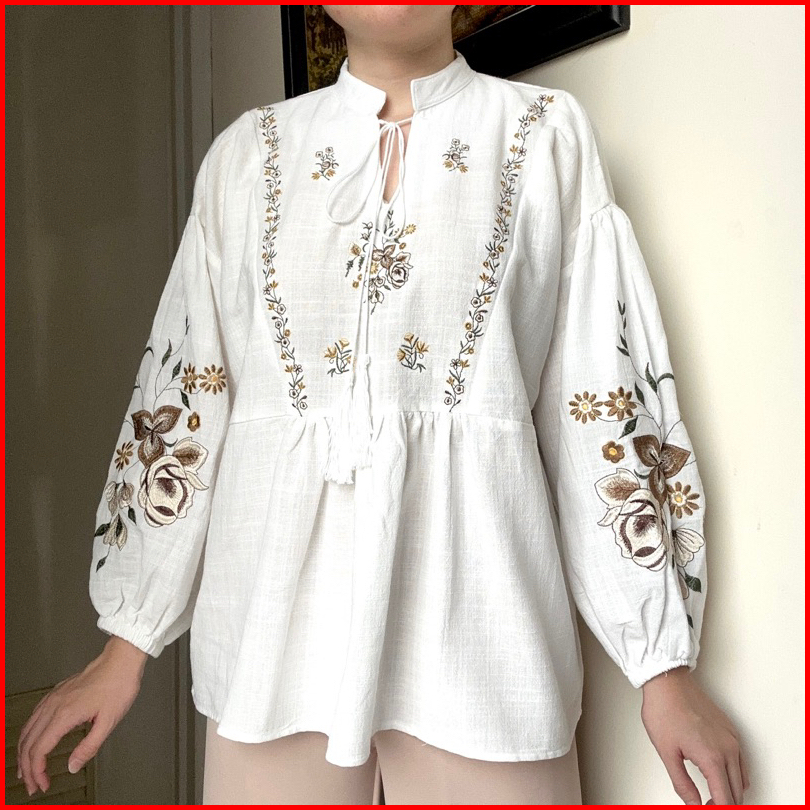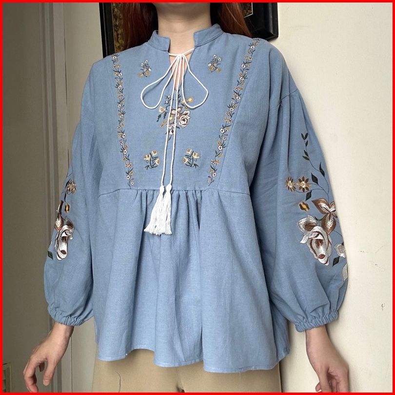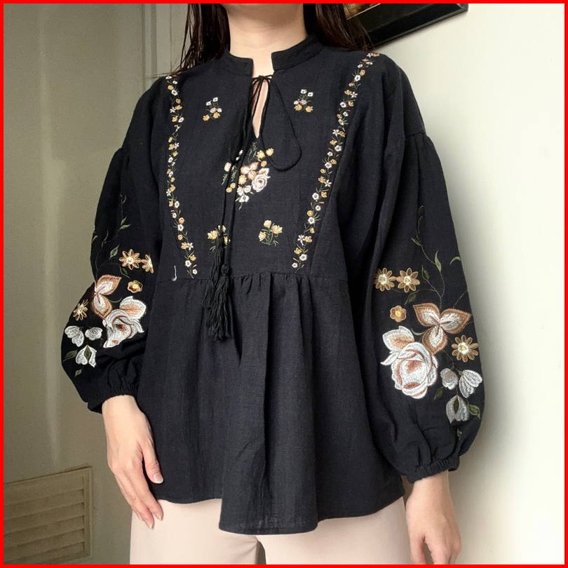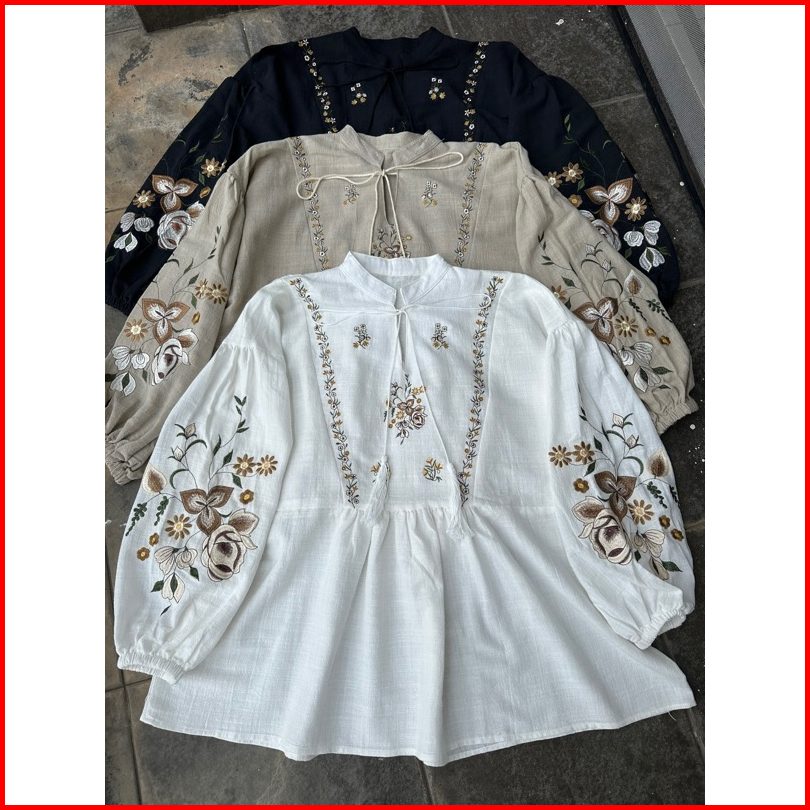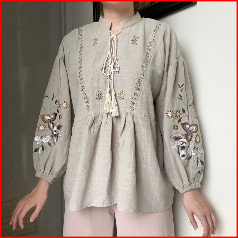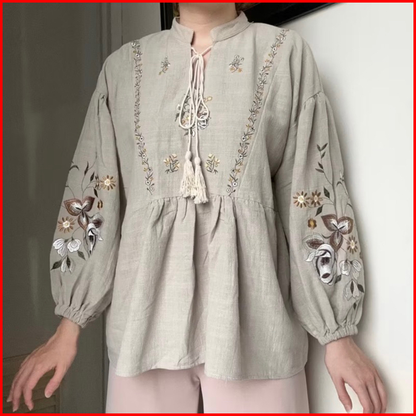 Zura Top Atasan Blouse Wanita Kerja Linen Top Bordir By Biel The Label