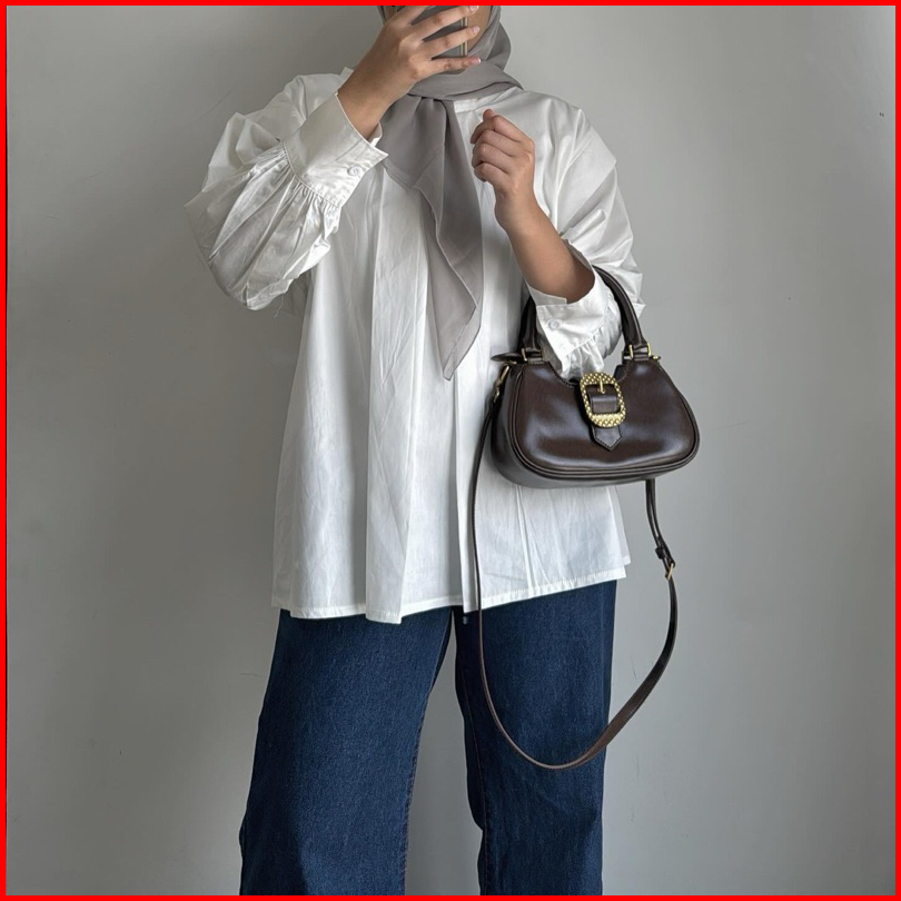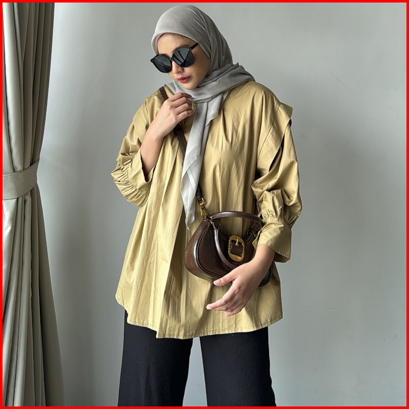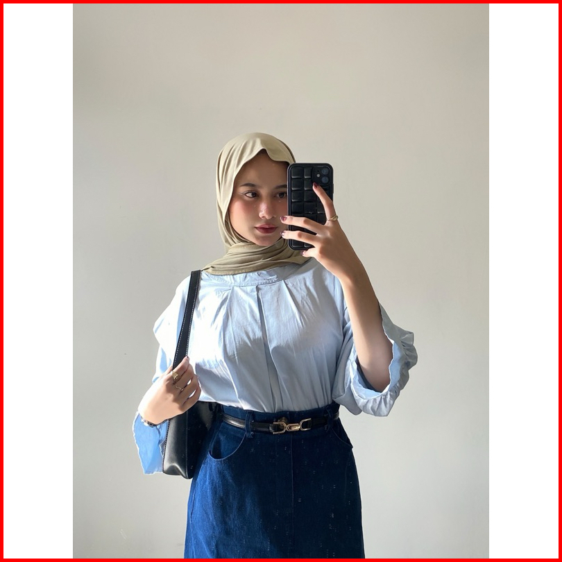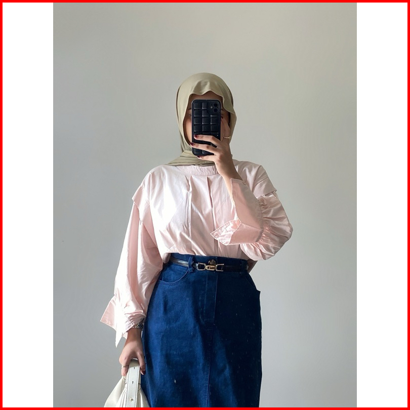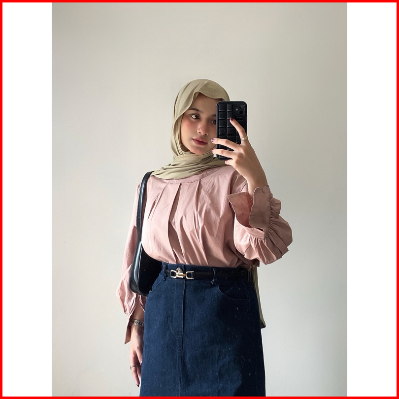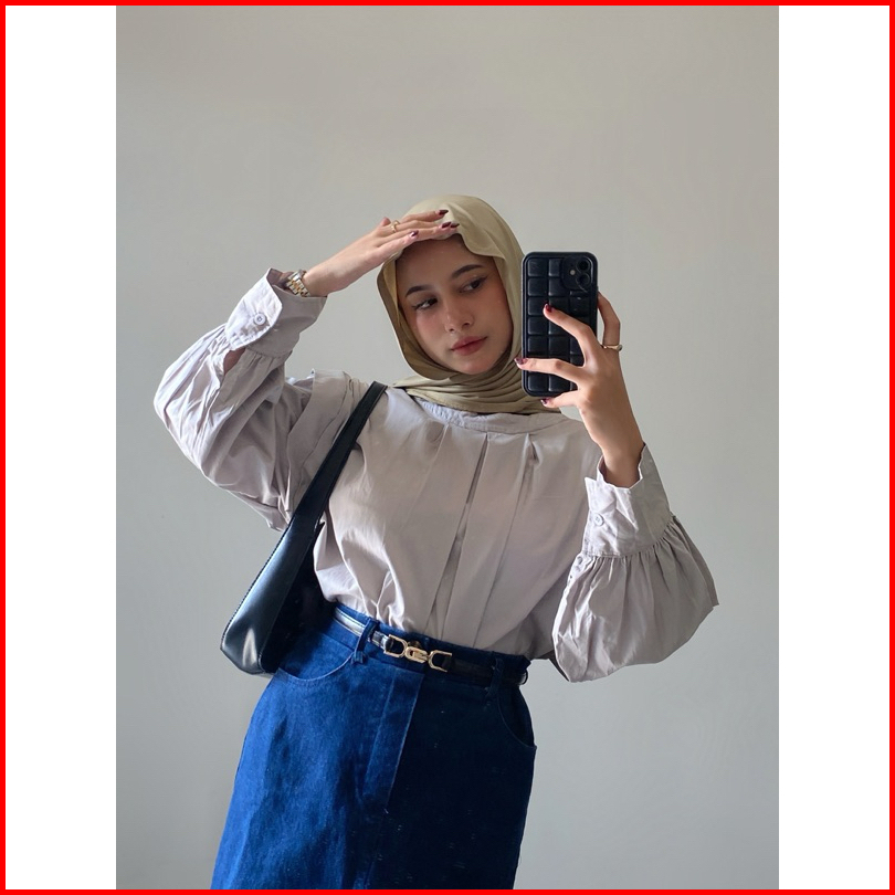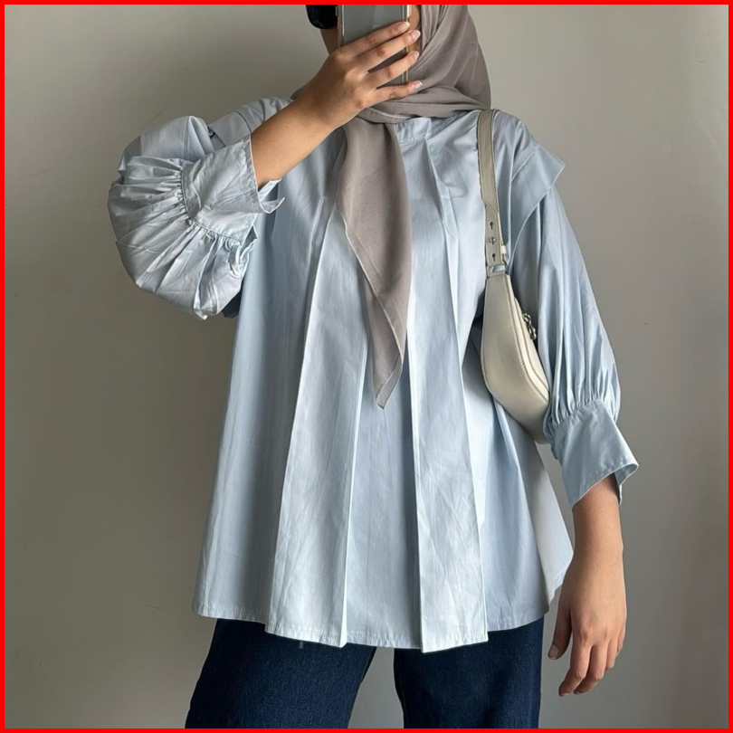 Selsha Top Blouse Poplin By Yellowfacy Atasan Wanita Lengan Balon Dada Rempel Puffy