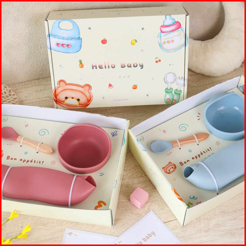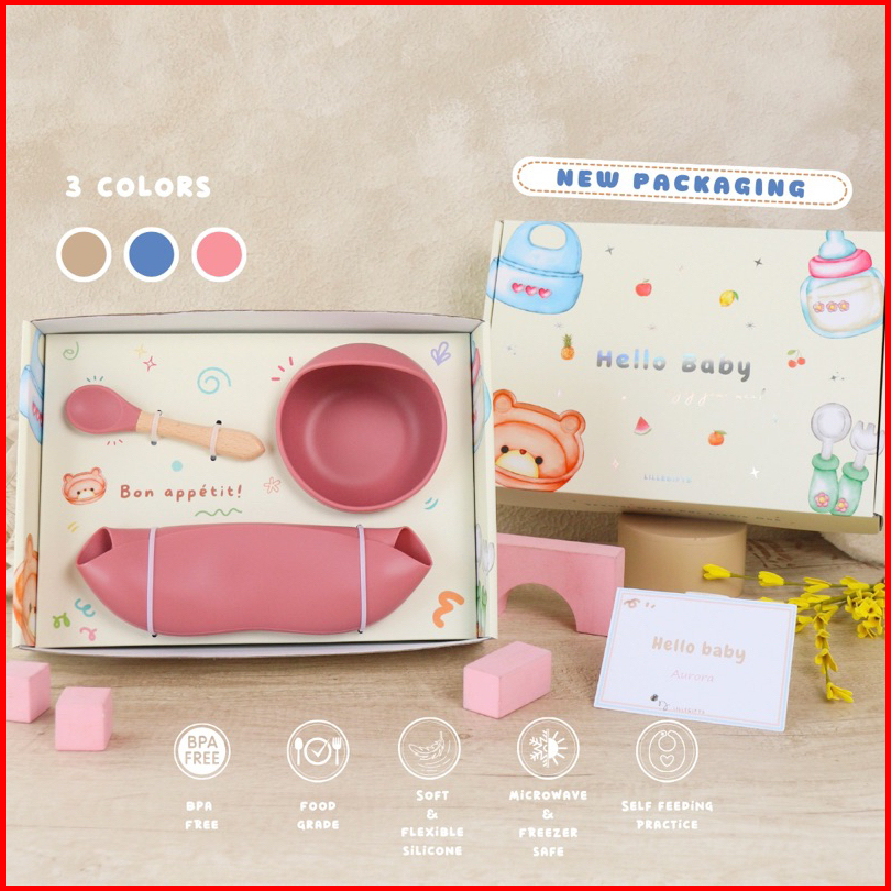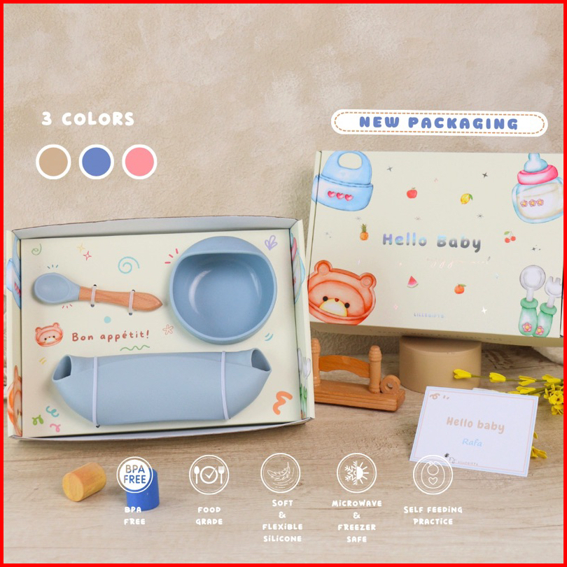 Lillegifts Hampers Bayi Feeding Set Silicone Baby Alat Makan Silikon Bayi Mpasi Newborn Kado Lahiran