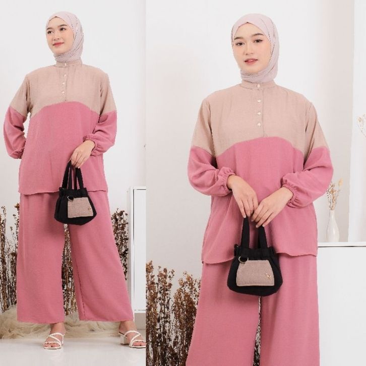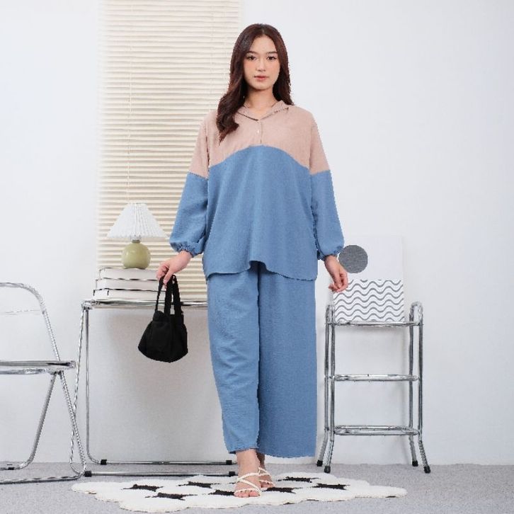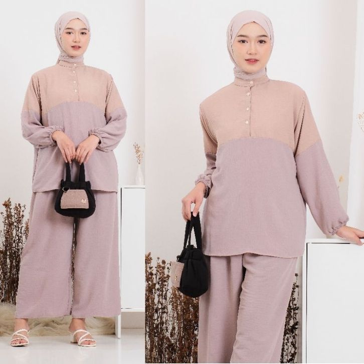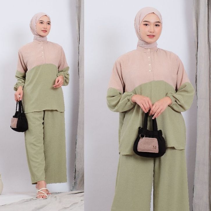 One Set Lova Setelan Crinkle Busui Kombinasi Ld 120