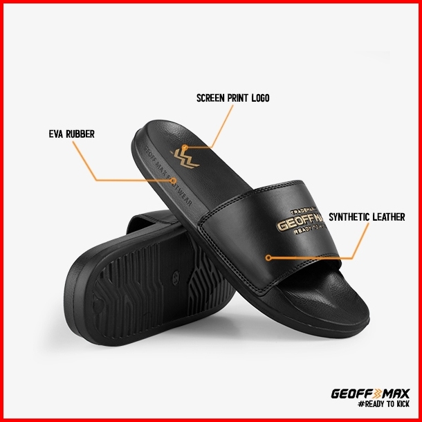 Geoff Max - Trader Black Sandal Pria Wanita Sendal Slop Slipper Anti Licin